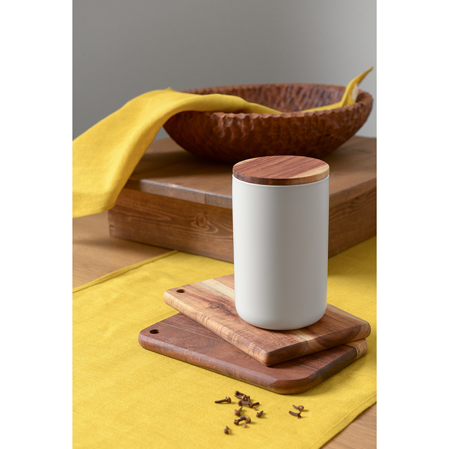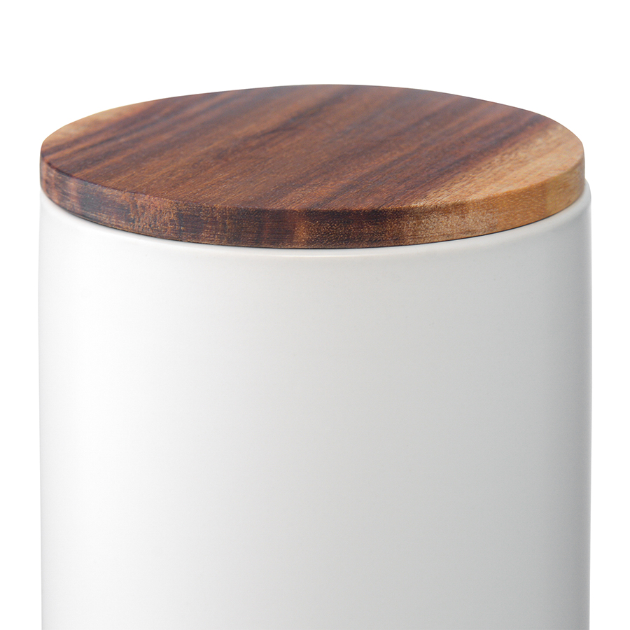 Материалы: каменная керамика, акация, силикон. Размеры: 10х10х17 см. Объем: 750 мл. Цвет: белый.