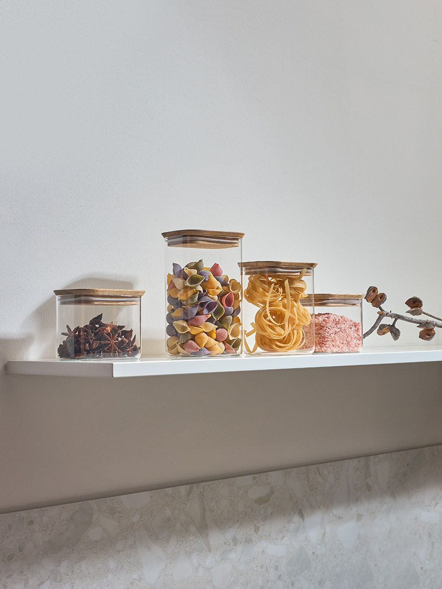 Банка Glass Acacia от бренда Smart Solutions – удобное и практичное решение для хранения сыпучих продуктов. Вы можете использовать ее под любую крупу, макаронные изделия, сухофрукты, орехи, чай или кофе. Набор из банок разных объемов позволит навести порядок на кухне и дополнить интерьер стильными акцентами.