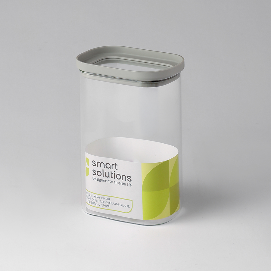 Банка для хранения прямоугольная Vacuum Glass, 1,25 л, светло-серая от Smart Solutions - цена 1100 руб (МРЦ). Для того, чтобы купить данный товар оптом по выгодной цене, пожалуйста, зарегистрируйтесь на сайте.