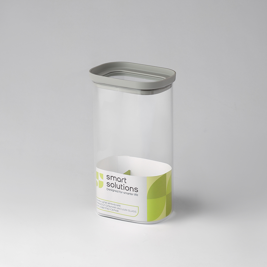 Банка для хранения прямоугольная Vacuum Glass, 1,5 л, светло-серая от Smart Solutions - цена 1100 руб (МРЦ). Для того, чтобы купить данный товар оптом по выгодной цене, пожалуйста, зарегистрируйтесь на сайте.