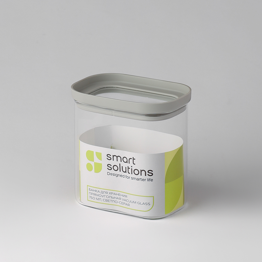 Банка для хранения прямоугольная Vacuum Glass, 750 мл, светло-серая от Smart Solutions - цена 990 руб (МРЦ). Для того, чтобы купить данный товар оптом по выгодной цене, пожалуйста, зарегистрируйтесь на сайте.
