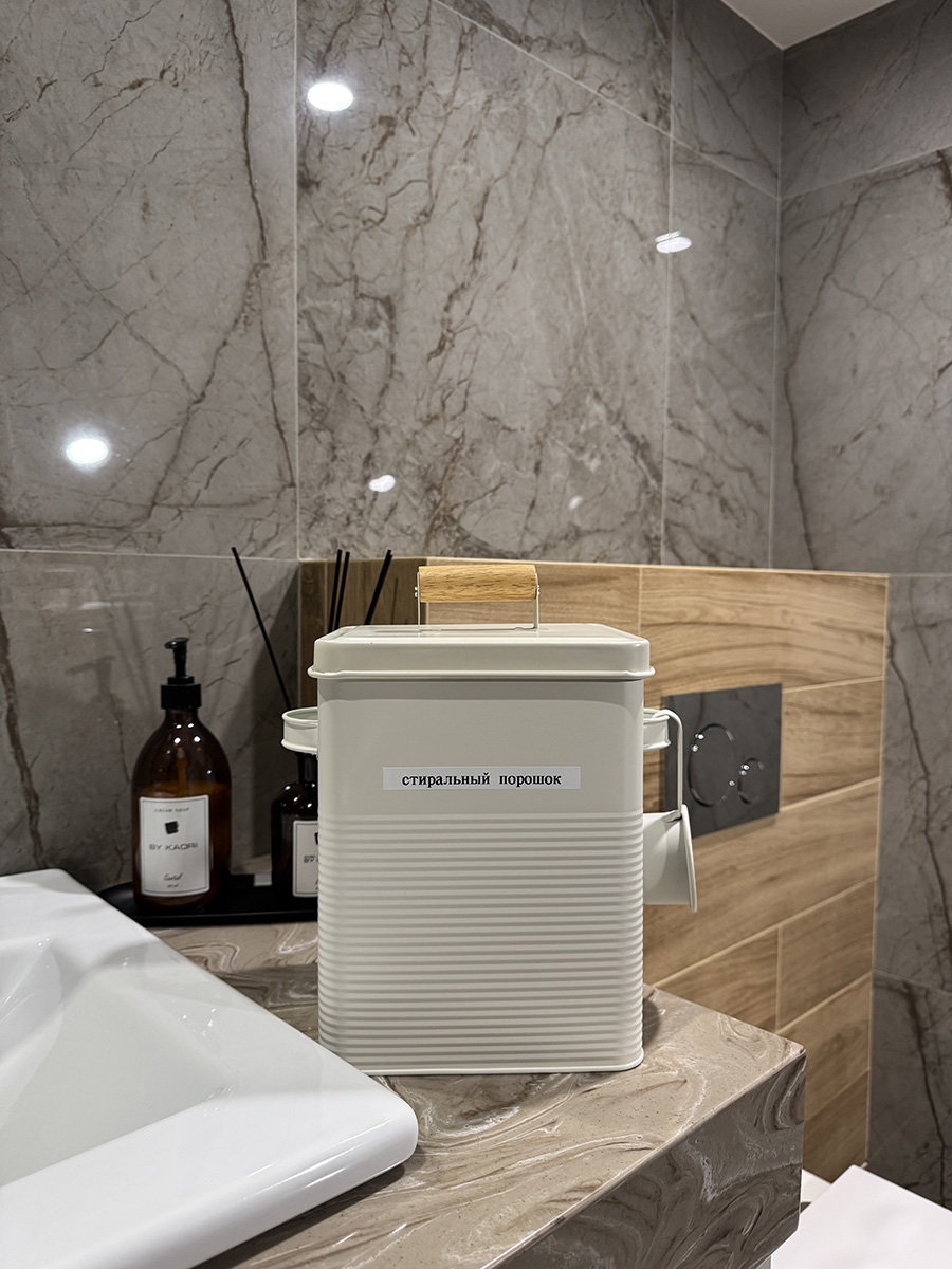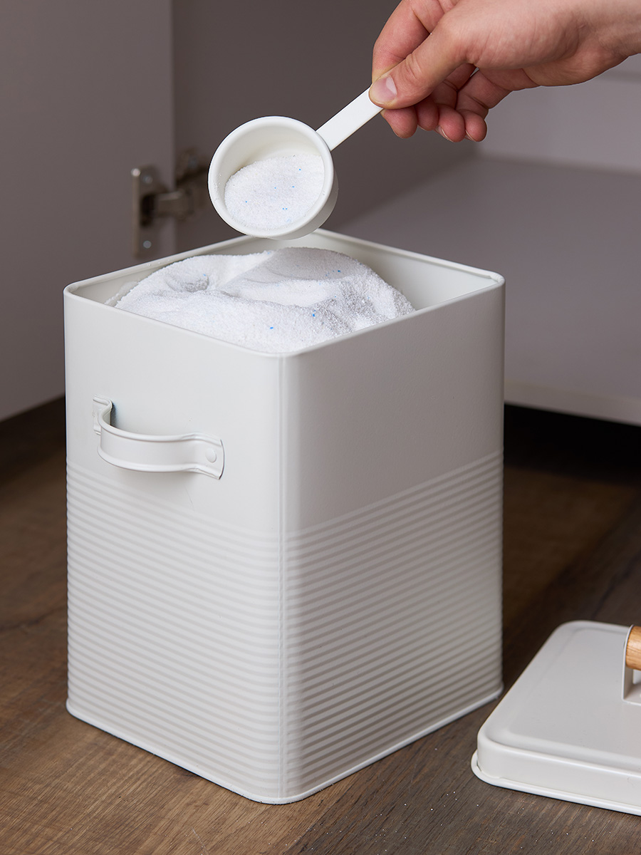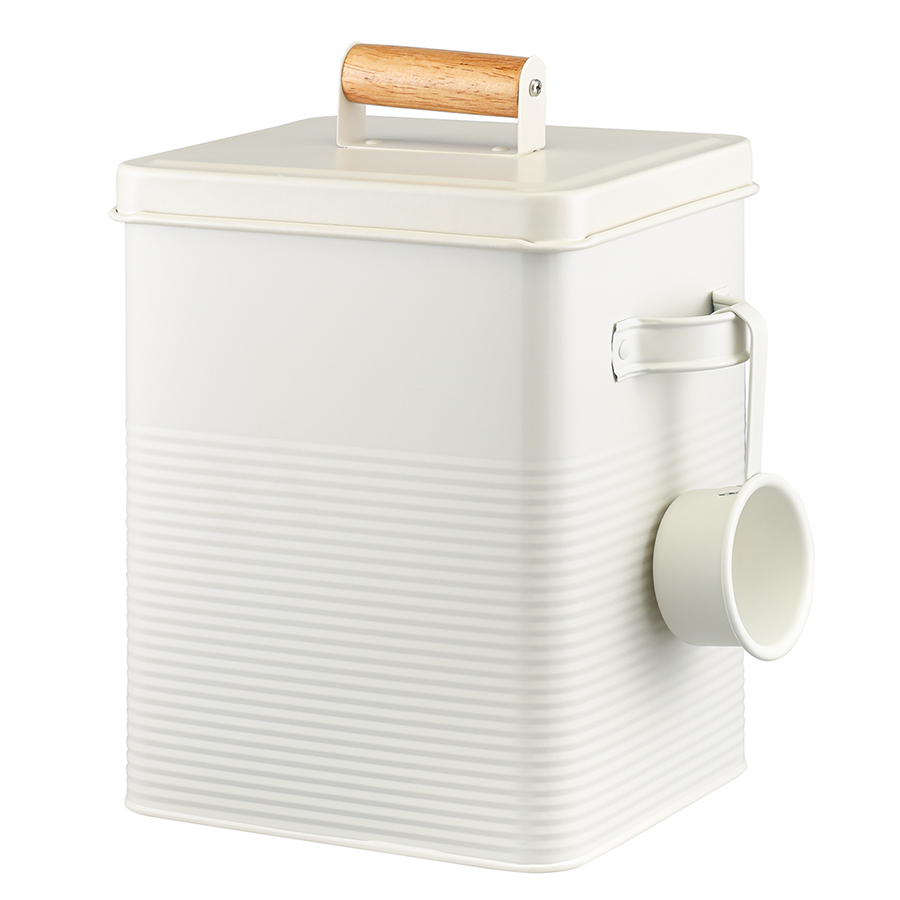 Материалы: углеродистая сталь, бамбук. Размеры банки: 23,7x16,7x27 см. Размеры ложки: 12,3х6,3х3,3 см. Объем: 6,2 л. Цвет: молочный.
