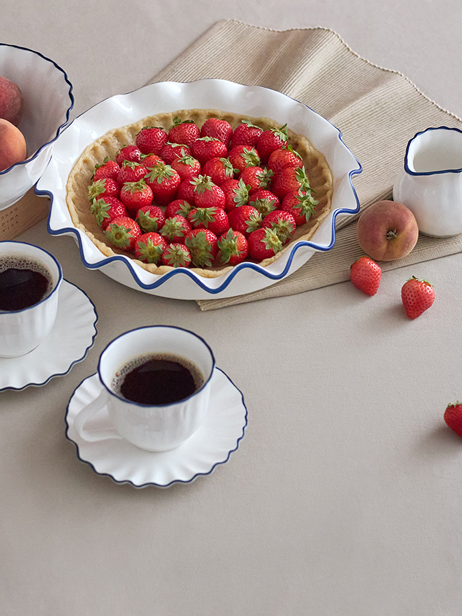Коллекция Santorini великолепно передает атмосферу уединенного греческого острова, известного своими завораживающими видами и удивительной архитектурой. Оттенки белого и синего напоминают о бескрайнем море и уютных домиках на скалах, а необычная “мятая” фактура фарфора ассоциируется с каменистыми склонами и живописными утесами.
