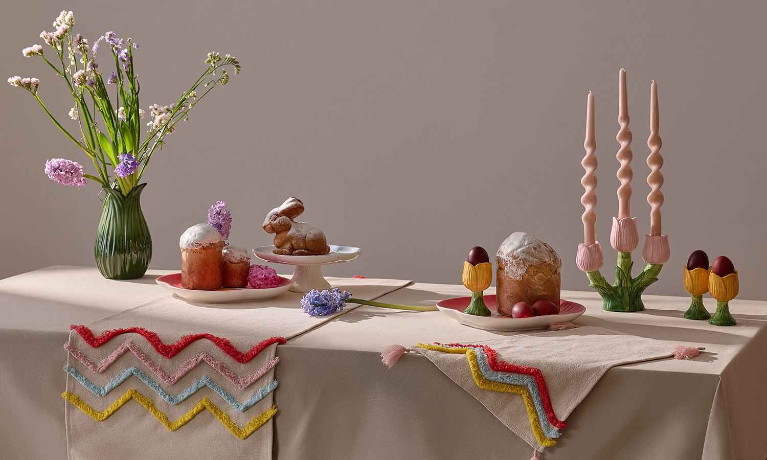 Мы перенесли красочную палитру и трогательные формы весенних цветов на изделия из фарфора и доломита. Каждый предмет в этой коллекции — гимн весеннему возрождению, который может стать смысловым и эстетическим центром праздничной сервировки.