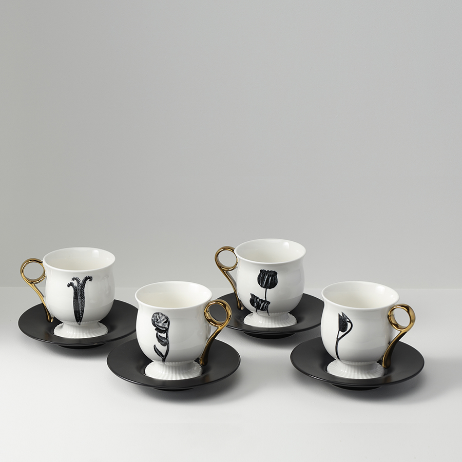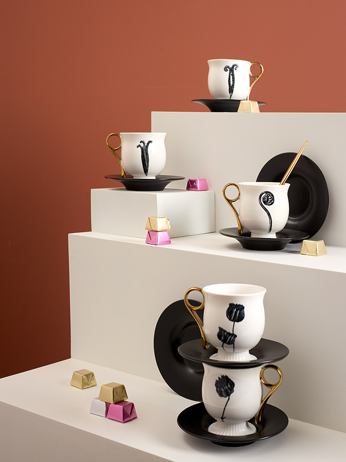 Коллекция Herbaria – союз наследия русского фарфорового завода Батенина и творчества немецкого фотографа-модерниста Карла Блоссфельдта. Батенинский фарфор отличался большим разнообразием форм и богатым декором – часто это были роскошные букеты на вызолоченных поверхностях. Взяв за основу классические формы, мы отошли от пышности оформления и сочетали их с лаконичными ботаническими мотивами. Herbaria – увлекательный диалог не только геометрии и природы, а также двух противоположных художественных стилей: русского ампира первой трети XIX века и немецкого модернизма начала XX.