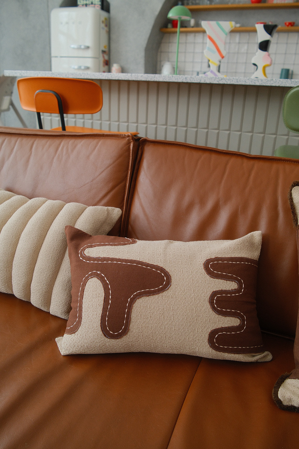- Имеет трендовый дизайн, что позволяет использовать такую подушку в качестве оригинального акцента.