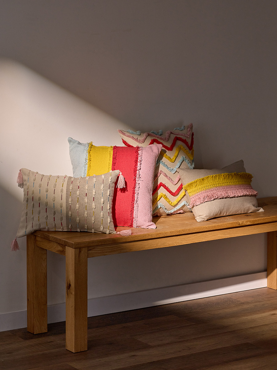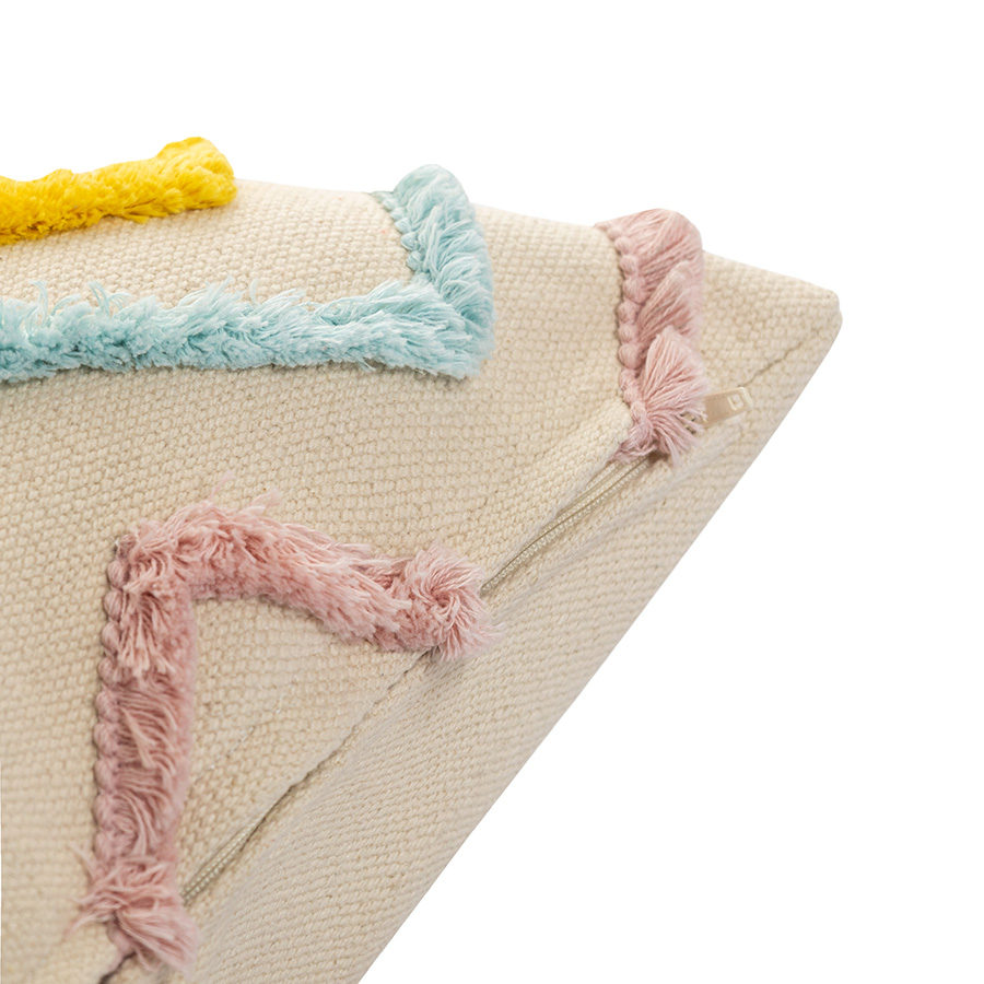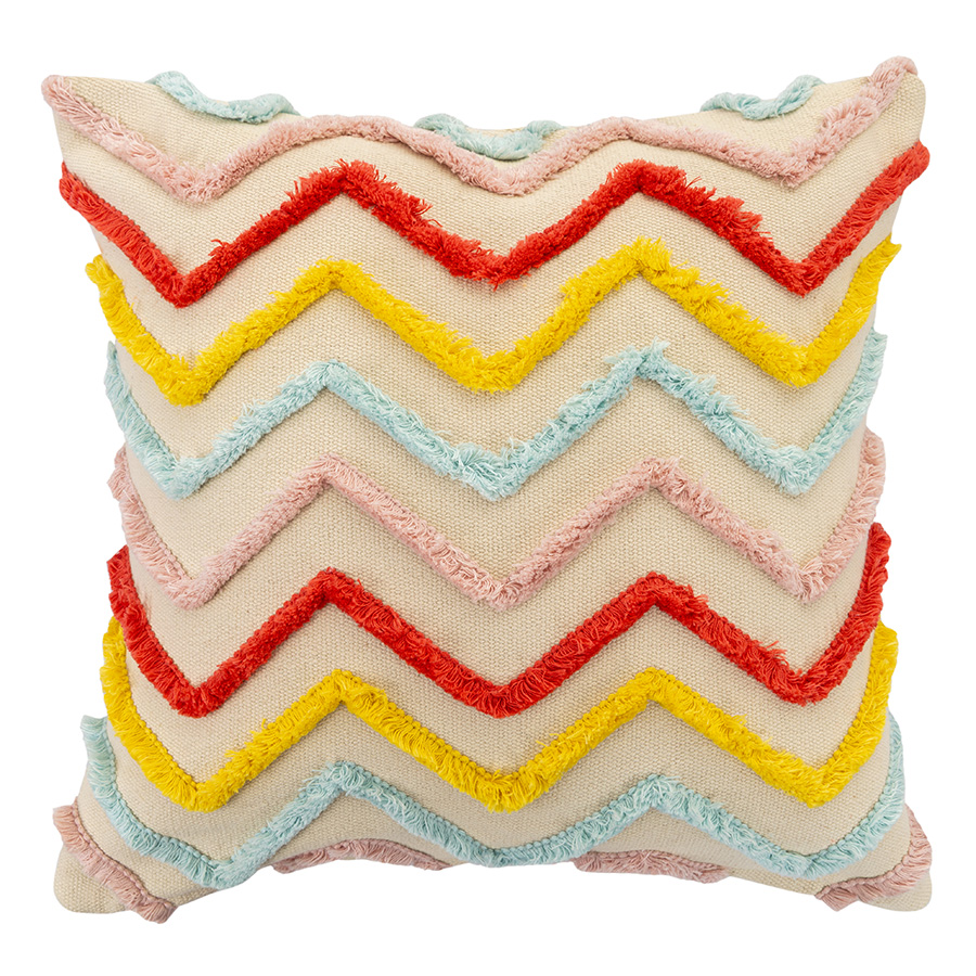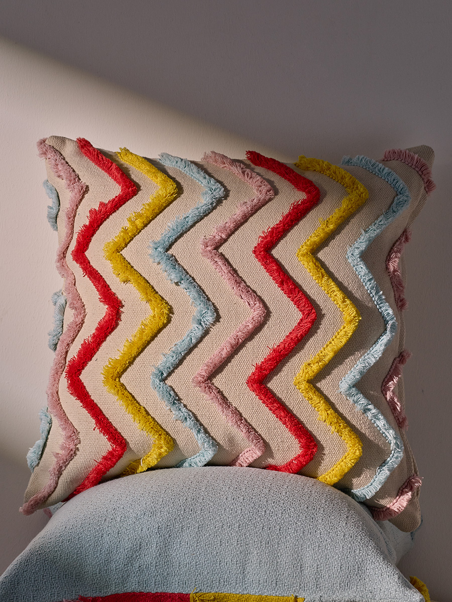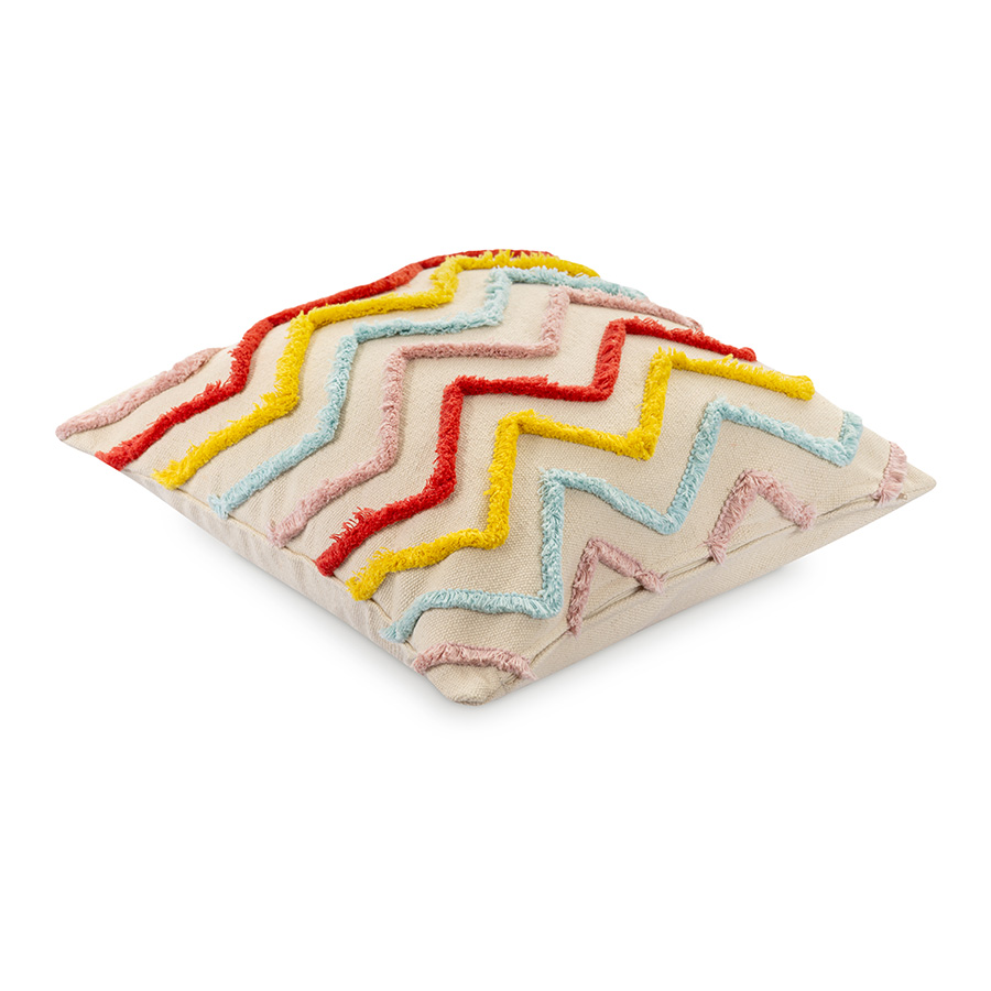 Этот чехол декорирован объемными зигзагообразными линиями, которые задают легкий ритм и ненавязчиво структурируют пространство. А чистая яркая палитра работает как визуальный акцент — притягивает взгляд и дарит радость каждый день. Используйте этот чехол как декор для гостиной, спальни или детской, чтобы добавить в интерьер немного динамики и цвета.