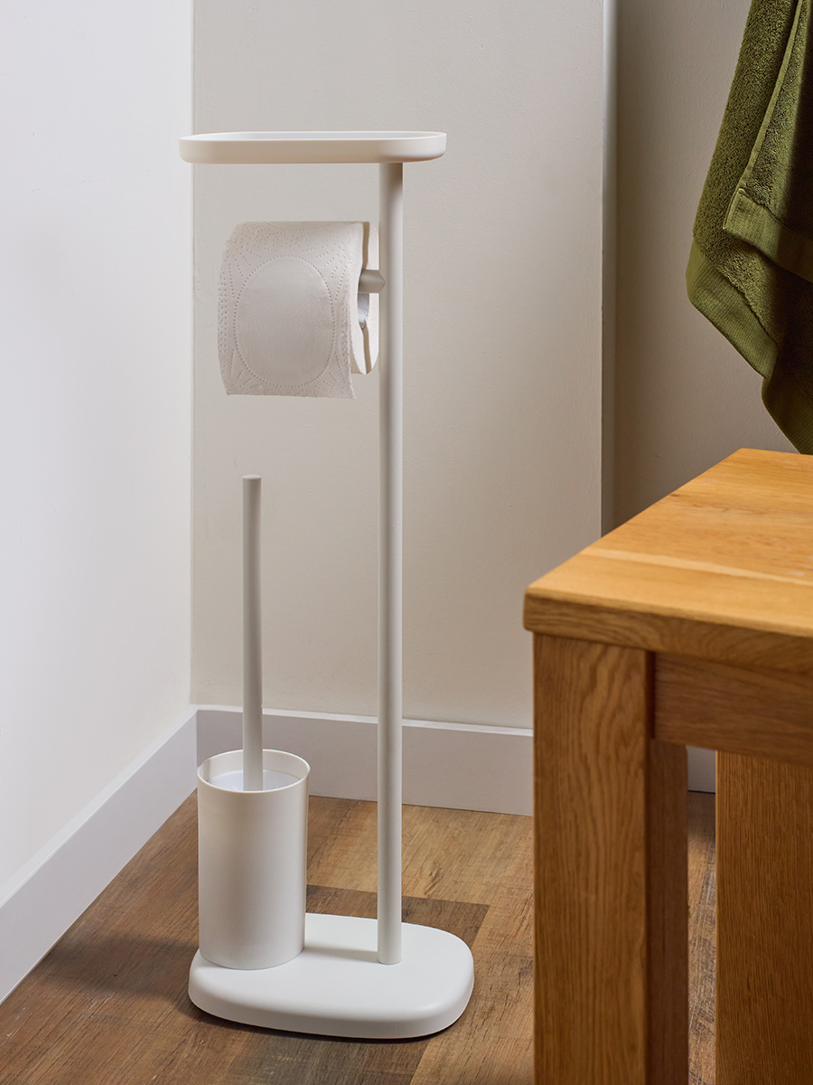 Держатель для туалетной бумаги с полочкой и ершиком Slim, белый