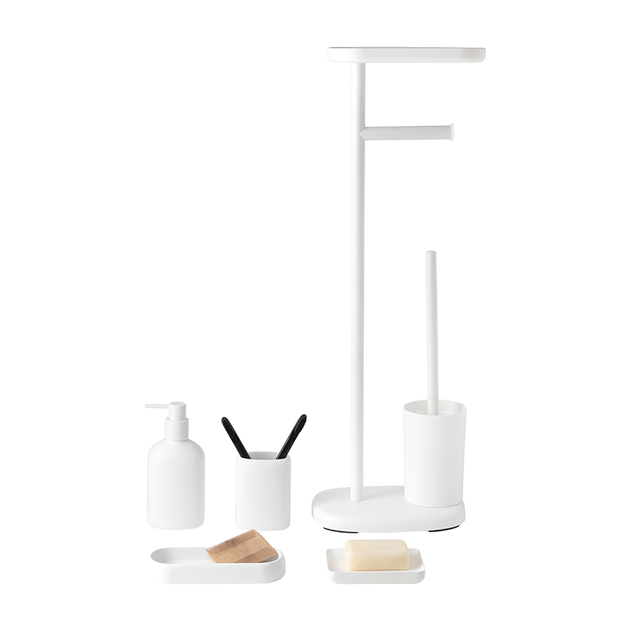 Держатель для туалетной бумаги с полочкой и ершиком Slim, белый от Bergenson Bjorn Bath - цена 4200 руб (МРЦ). Для того, чтобы купить данный товар оптом по выгодной цене, пожалуйста, зарегистрируйтесь на сайте.