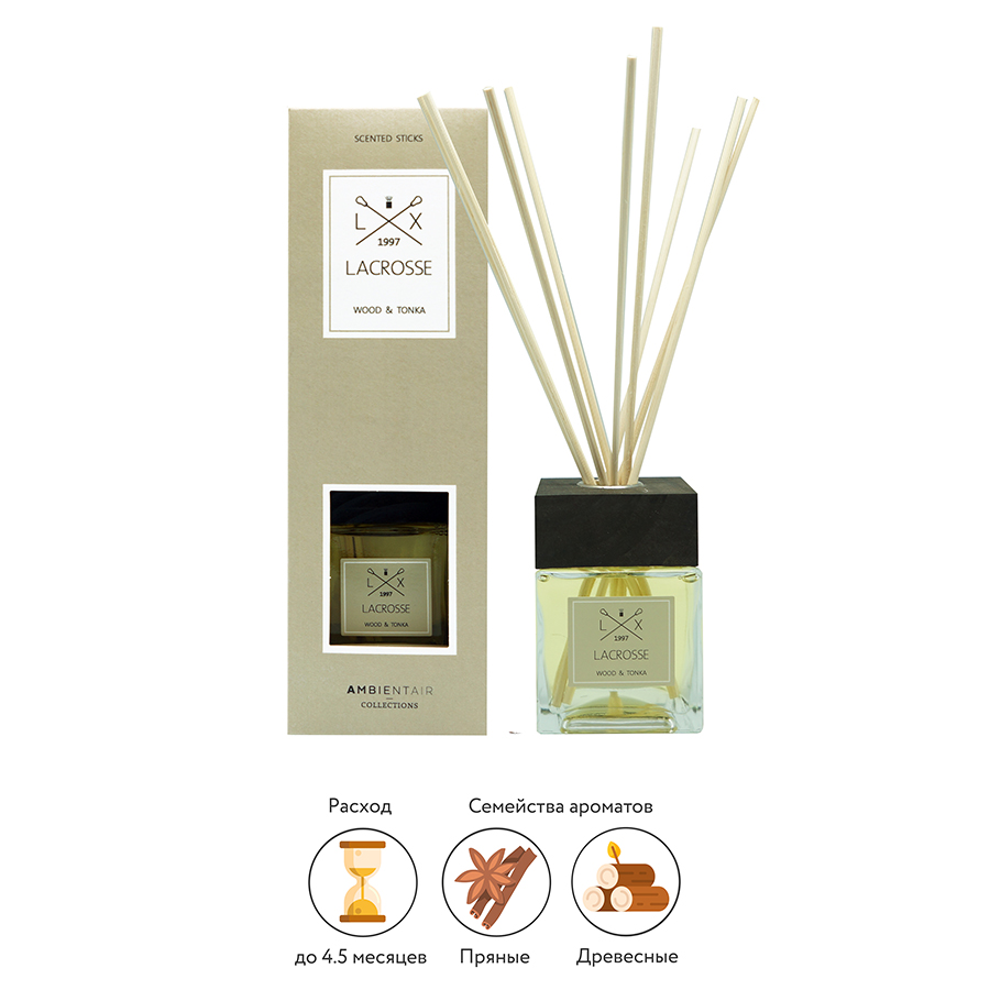 Диффузор ароматический Lacrosse, Wood&Tonka, 200 мл от Ambientair - цена 3690 руб (МРЦ). Для того, чтобы купить данный товар оптом по выгодной цене, пожалуйста, зарегистрируйтесь на сайте.