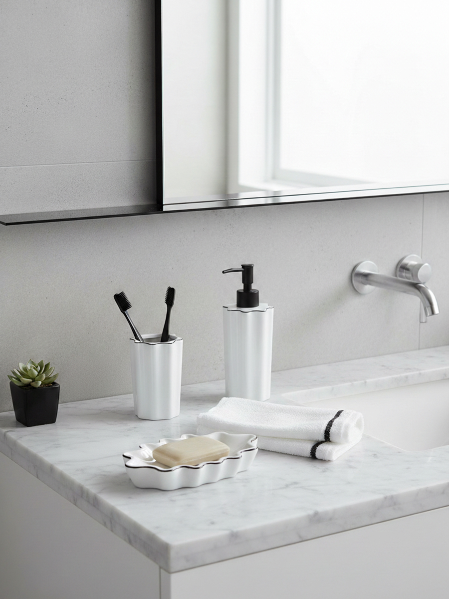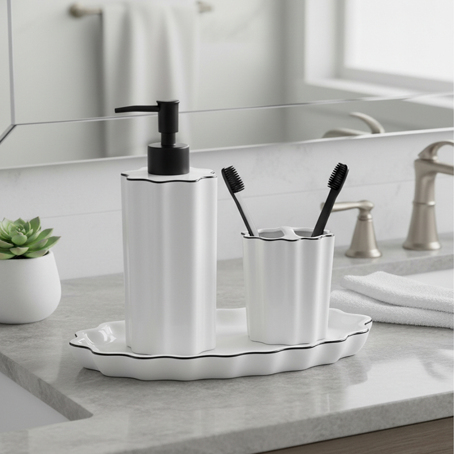 Коллекция Camellia — это изысканный набор для ванной комнаты, где изящные волны становятся главной акцентной деталью интерьера. Белоснежная керамика с плавными, текучими линиями воплощает в себе природную грацию и утонченную простоту. Черная окантовка создает изысканный акцент и органично подчеркивает красоту мягких изгибов корпуса.