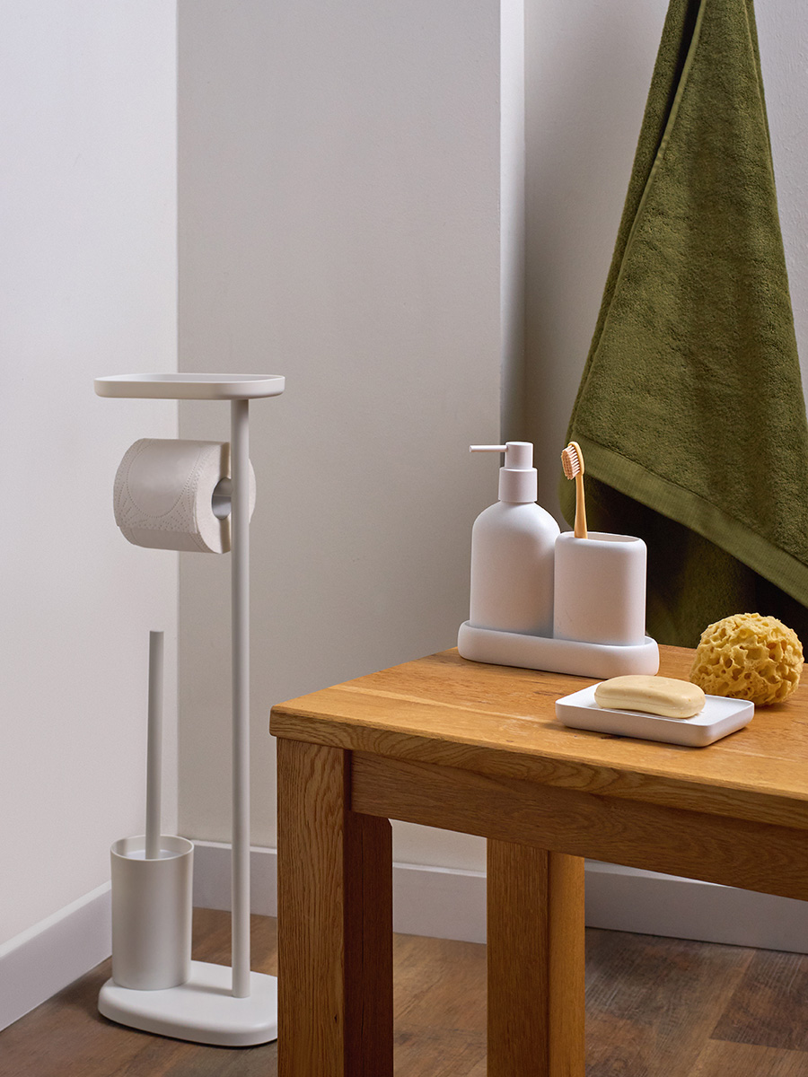 - Диспенсер имеет приятную на ощупь поверхность, легко помещается на подставке благодаря эргономичной форме и компактным размерам.