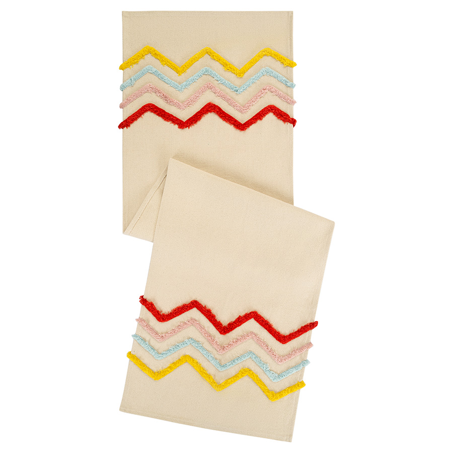 Эта дорожка декорирована объемными зигзагообразными линиями, которые будут прекрасно смотреться как в праздничной, так и в повседневной сервировке. Используйте ее соло или вместе со скатертью — чтобы зонировать праздничный стол, обозначить посадочные места для гостей или просто добавить стильной многослойности.