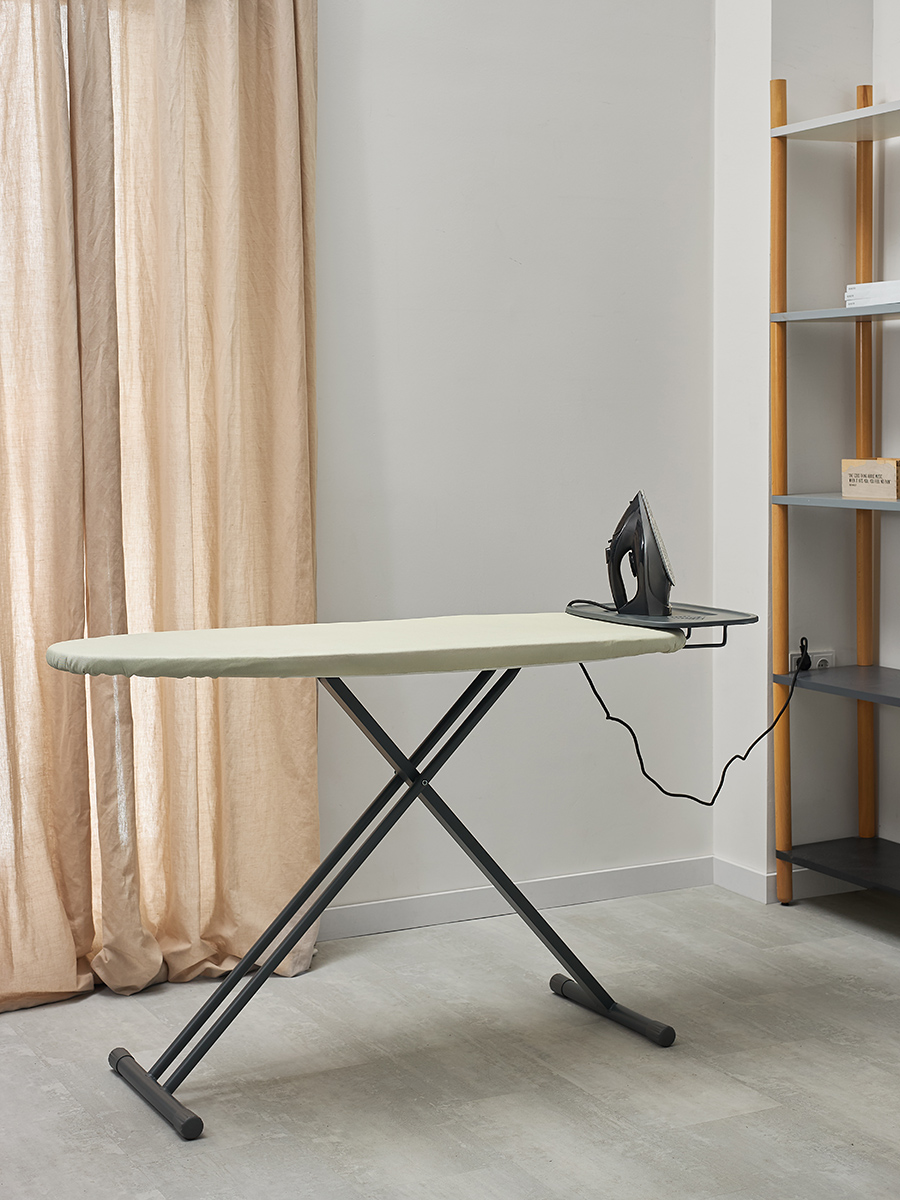 - На рабочей поверхности шириной 46 см легко гладить даже объемные вещи, например, постельное белье или пальто.