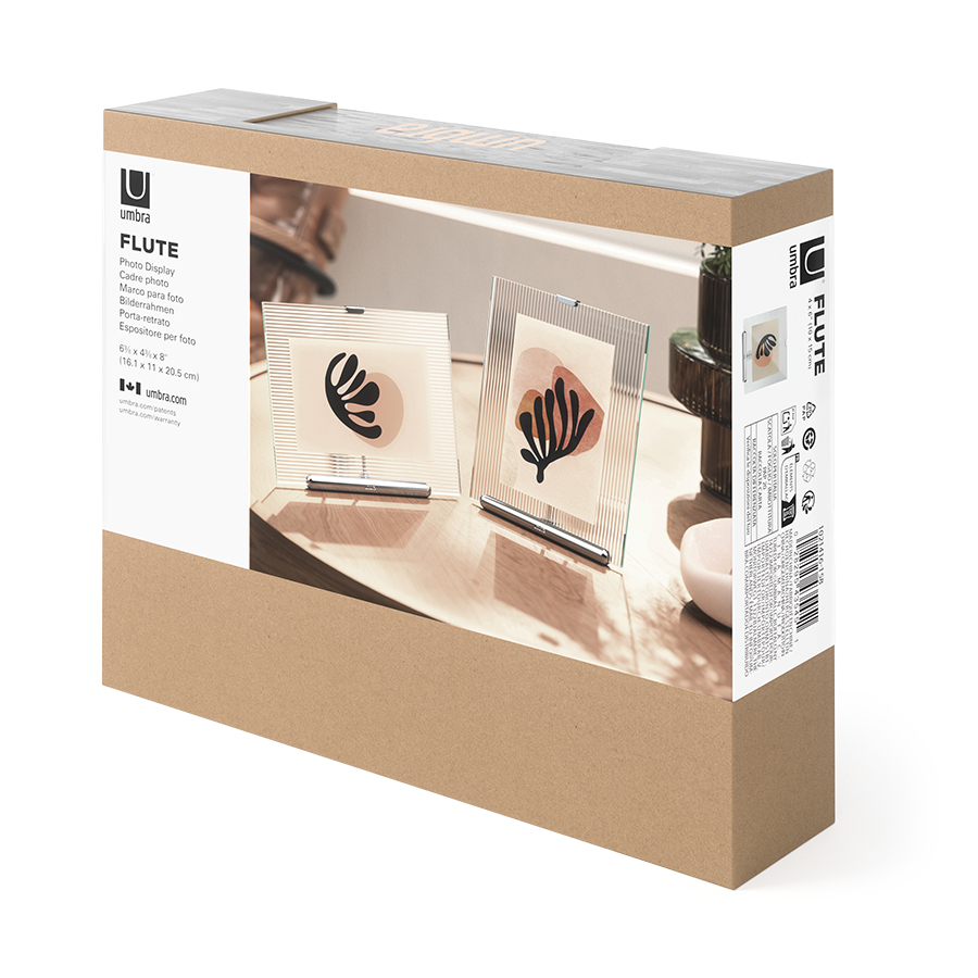 Фоторамка Flute превращает обычную фотографию в художественное произведение. Ребристая текстура стекла создает эффект легкой воздушности. Полированный металл добавляет благородного сияния, придавая изображению глубину и утонченность.