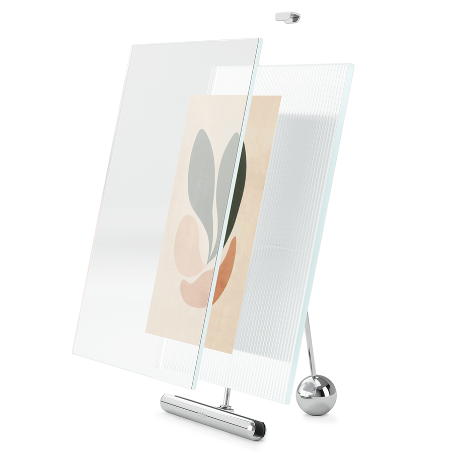 Фоторамка Flute превращает обычную фотографию в художественное произведение. Ребристая текстура стекла создает эффект легкой воздушности. Полированный металл добавляет благородного сияния, придавая изображению глубину и утонченность.