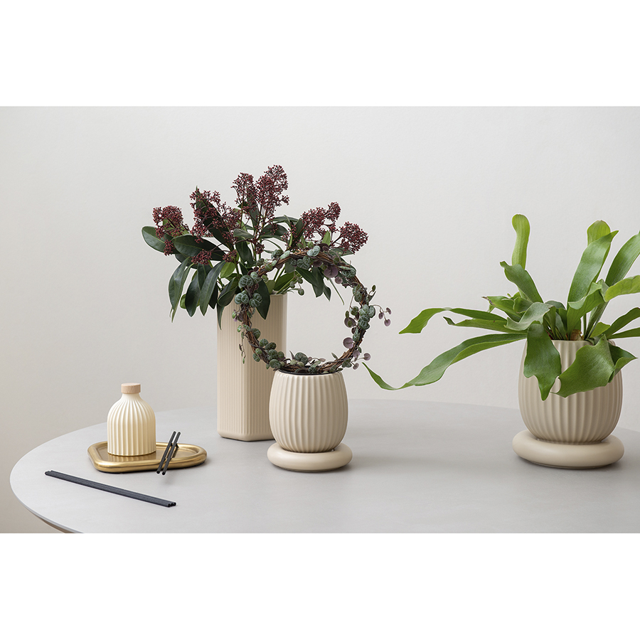 Горшок цветочный кремового цвета из коллекции Edge хорошо подойдет для небольших комнатных растений и поможет привнести природу в дом. Изделие простой округлой формы с фактурными гранями отлично сочетается со свечами и вазами из этой же коллекции, позволяя создавать интересные интерьерные композиции. Горшок выполнен из доломита, устойчивого к сколам, легкого и экологически чистого материала, снаружи и внутри покрыт матовой глазурью, имеет дренажное отверстие в нижней части. Подстановочная тарелка входит в комплект поставки.