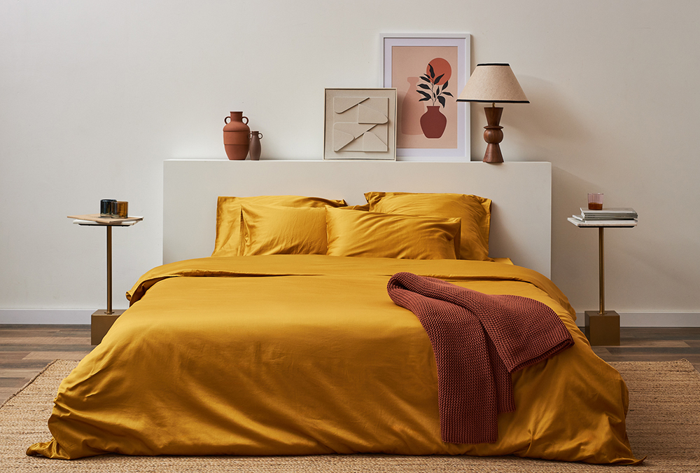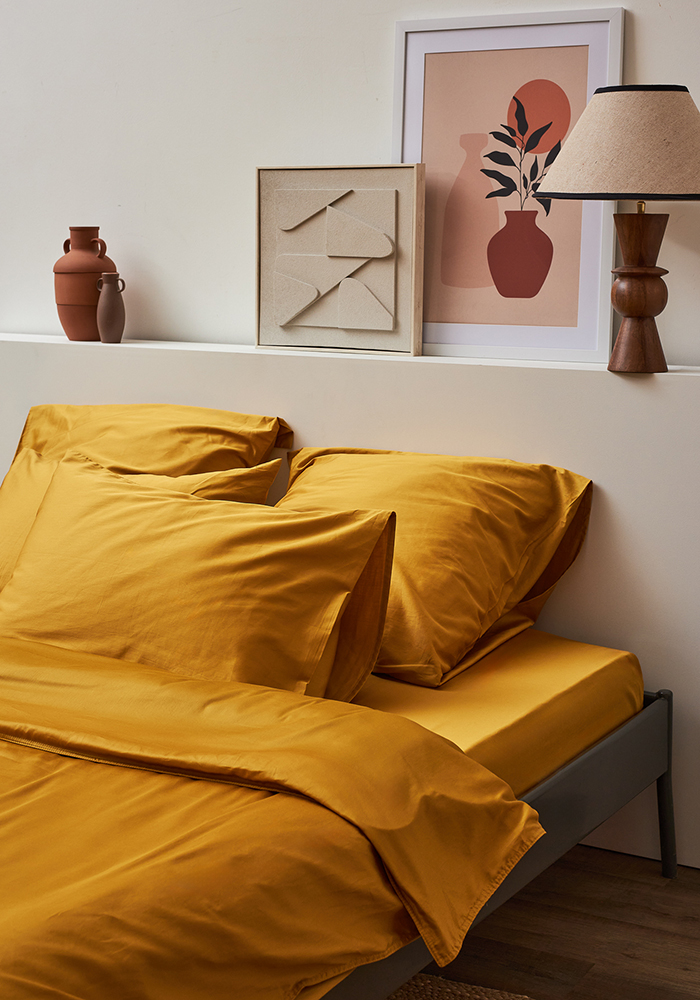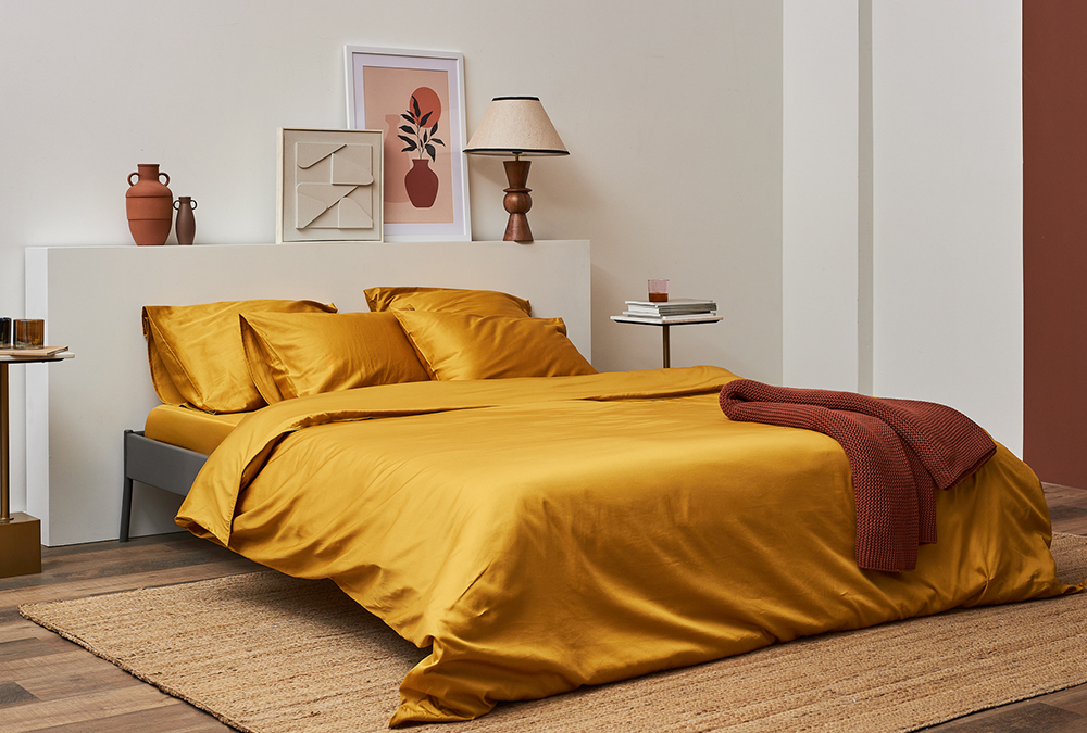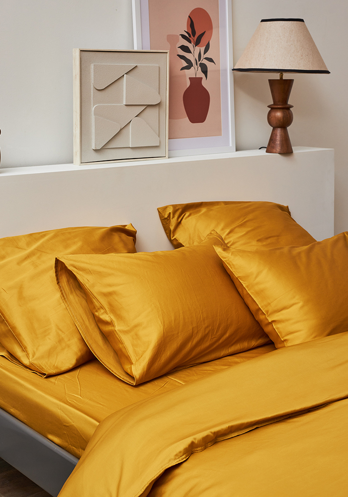 Комплект постельного белья из премиального сатина горчичного цвета из коллекции Essential, 150х200 см