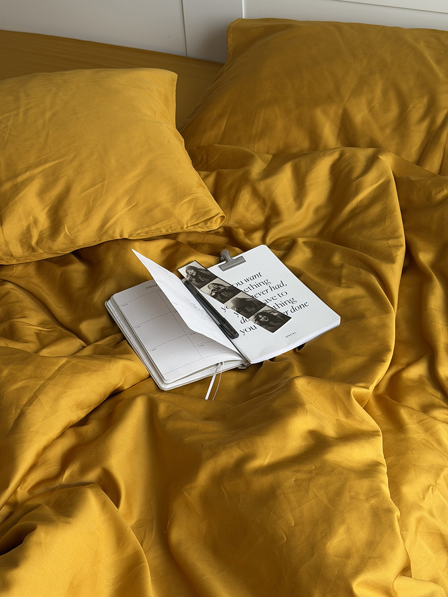 Комплект постельного белья из премиального сатина горчичного цвета из коллекции Essential, 200х220 см