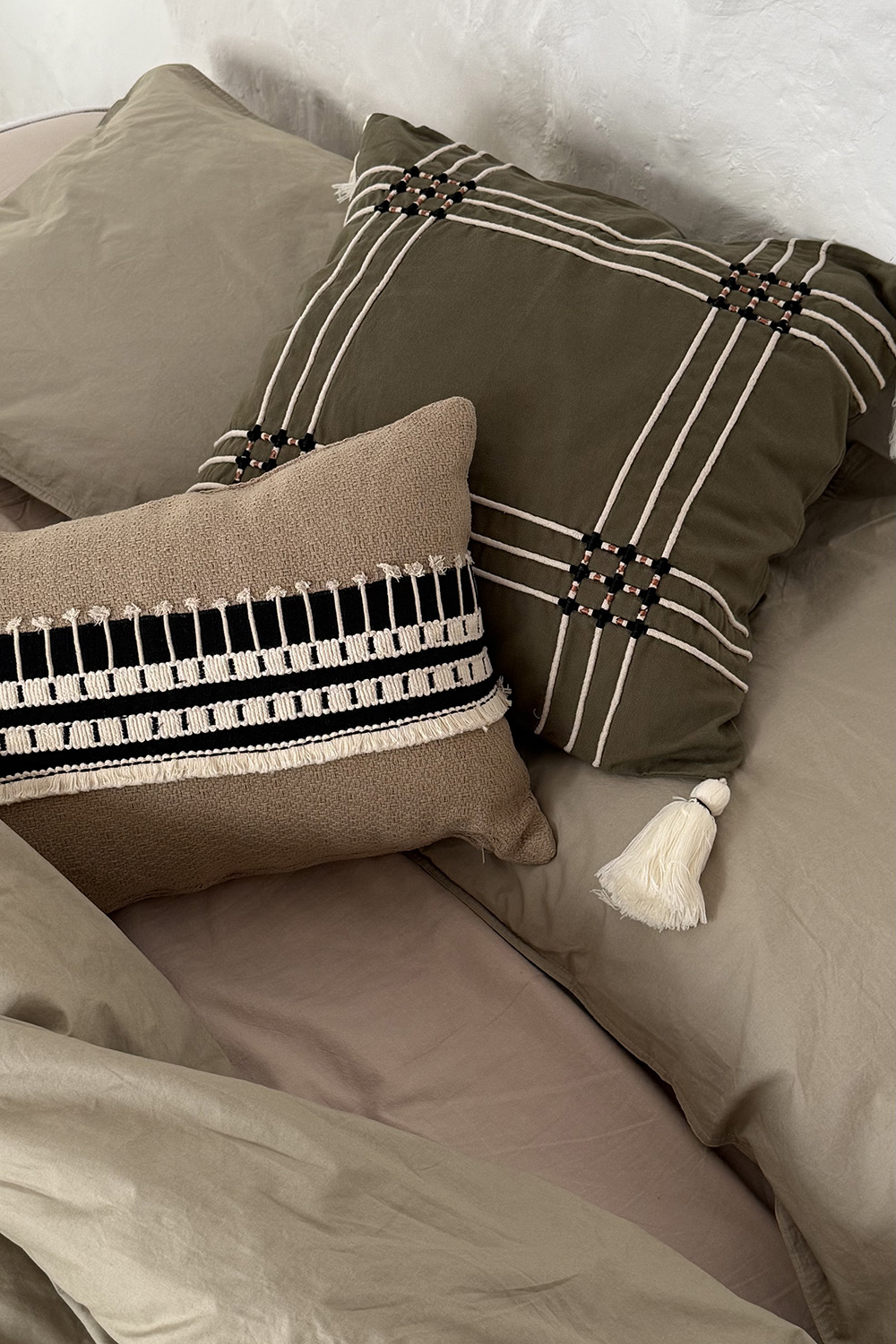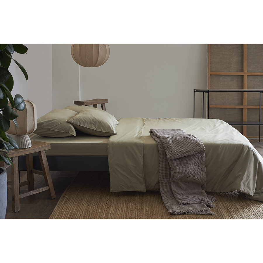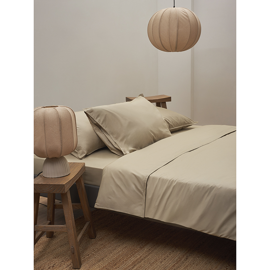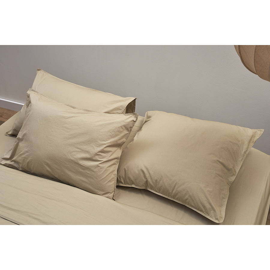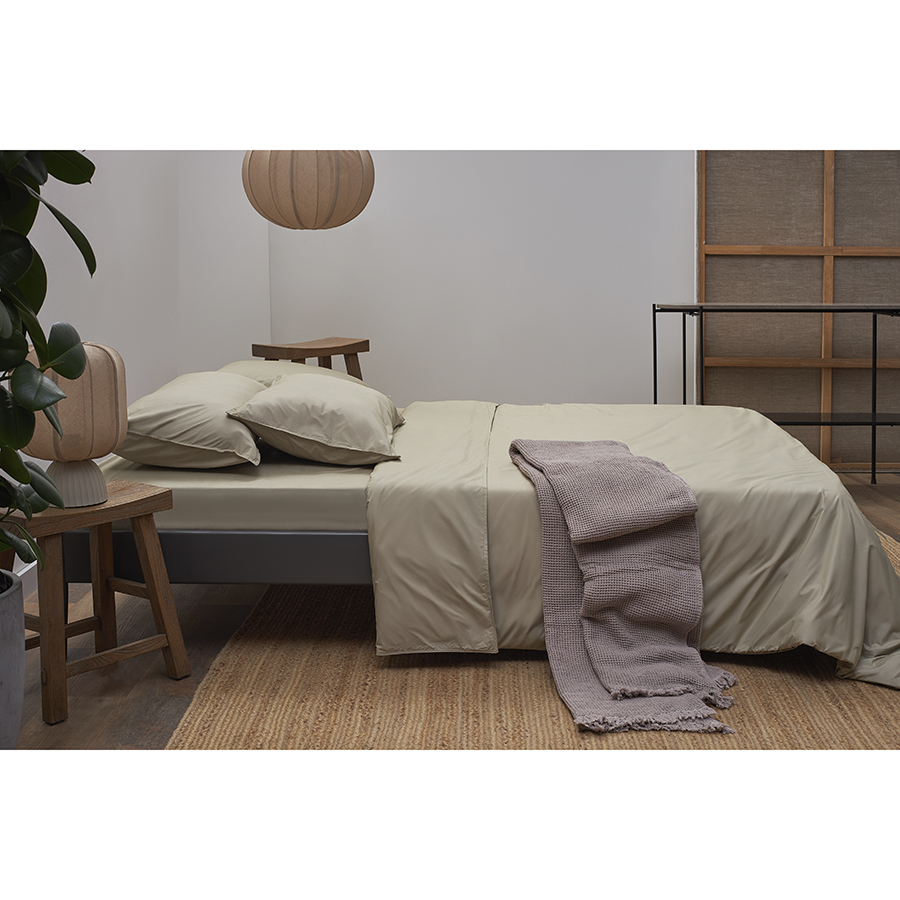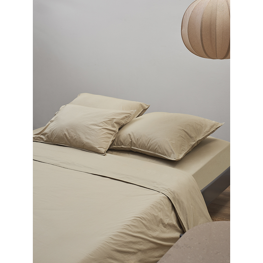 Комплект постельного белья из стираного перкаля бежево-серого цвета из коллекции Essential, 200х220 см