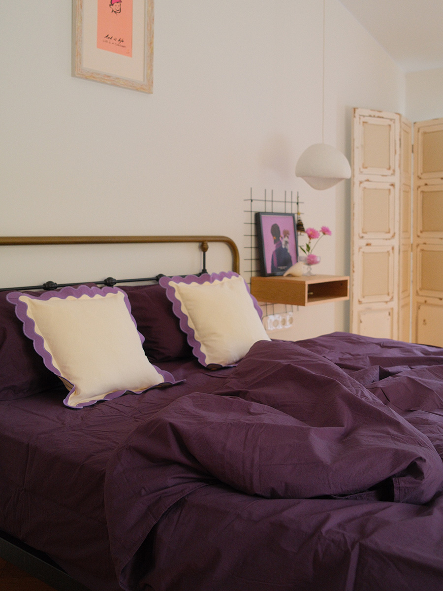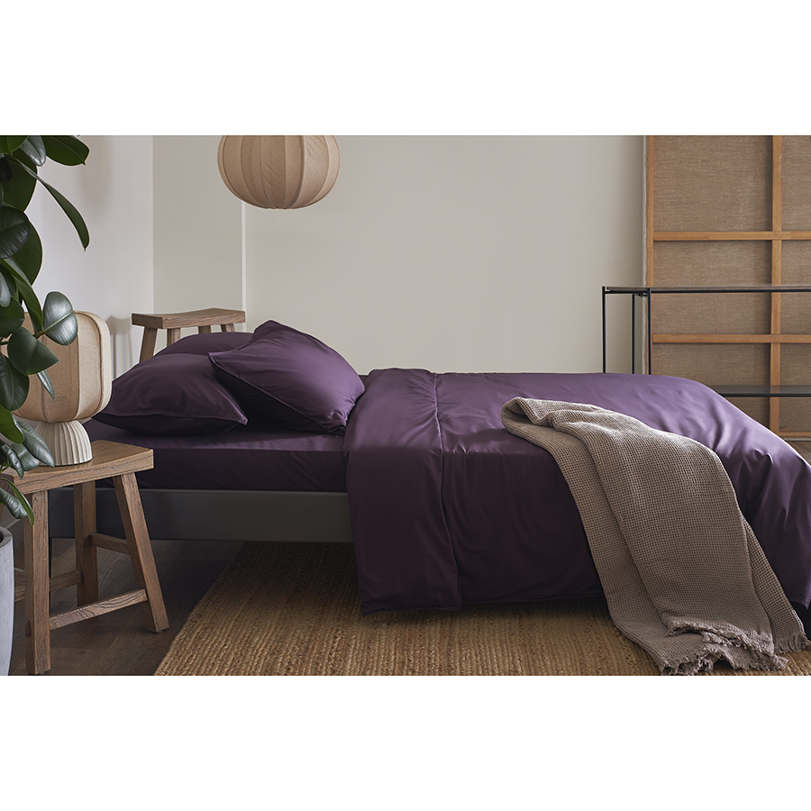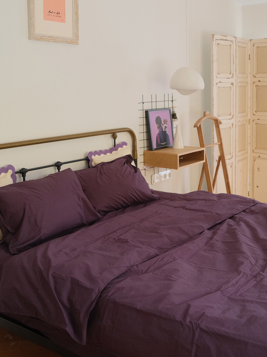 Комплект постельного белья из стираного перкаля сливового цвета из коллекции Essential, 150х200 см