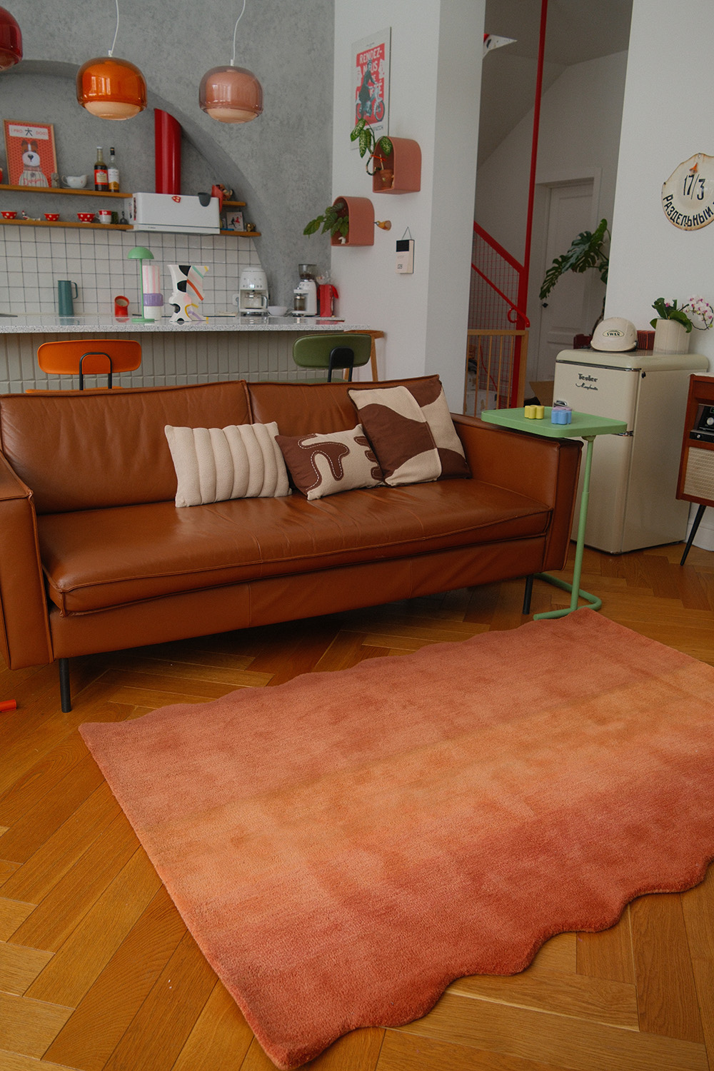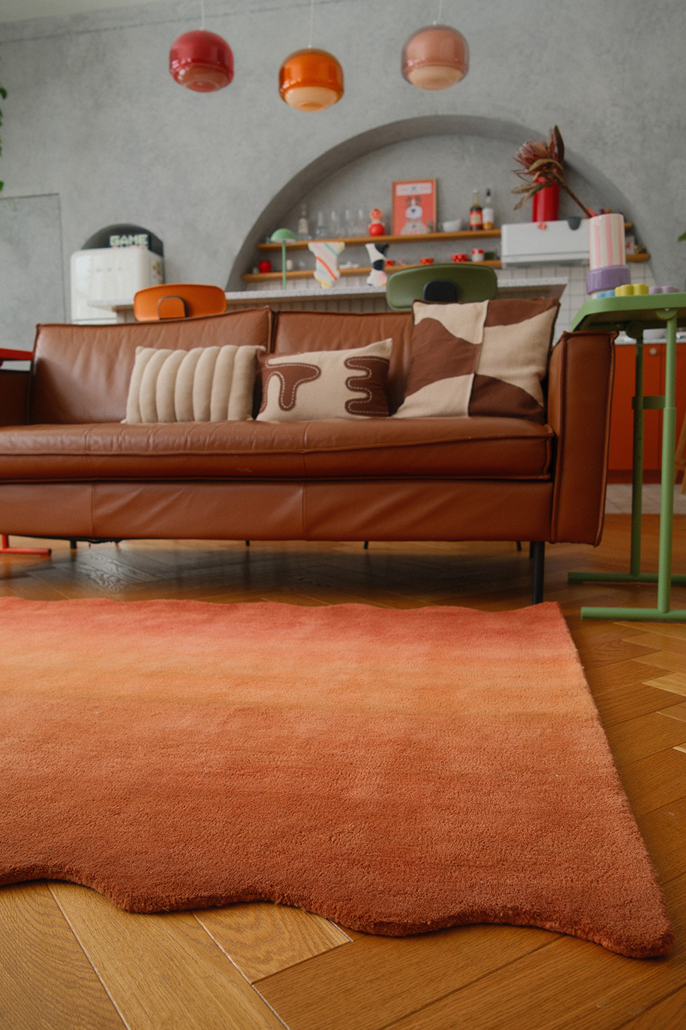 - Легкий градиент и глубокий оттенок создают выразительный акцент в интерьере, привнося в окружающее пространство тепло и уют.