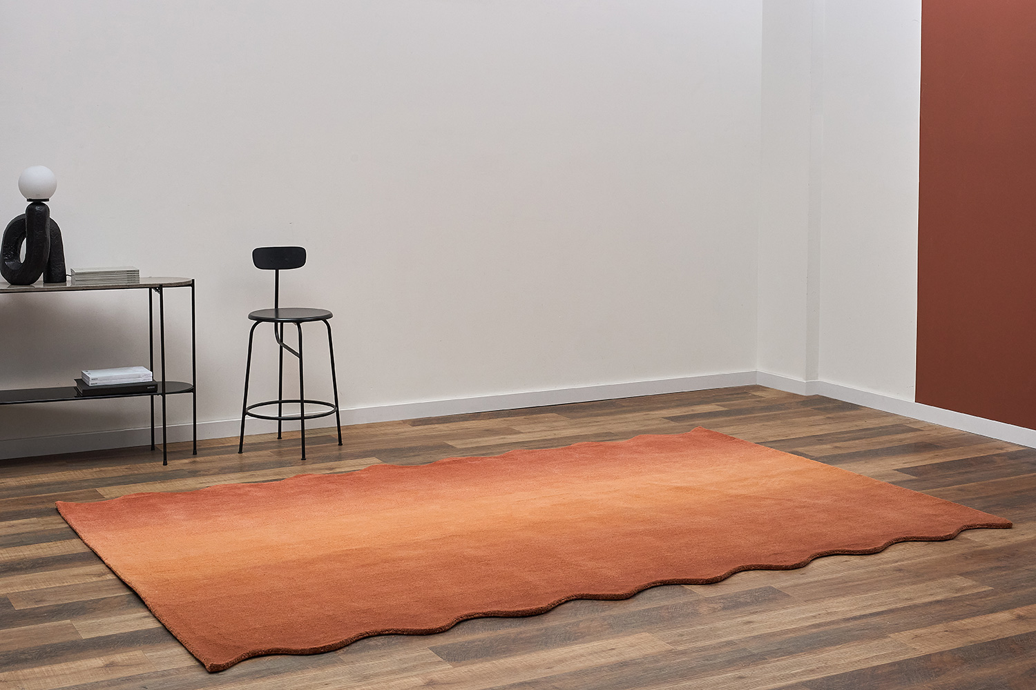 Ковер из шерсти Over Horizon терракотового цвета из коллекции Trendy Ruffles от Tkano - цена 64990 руб (МРЦ). Для того, чтобы купить данный товар оптом по выгодной цене, пожалуйста, зарегистрируйтесь на сайте.