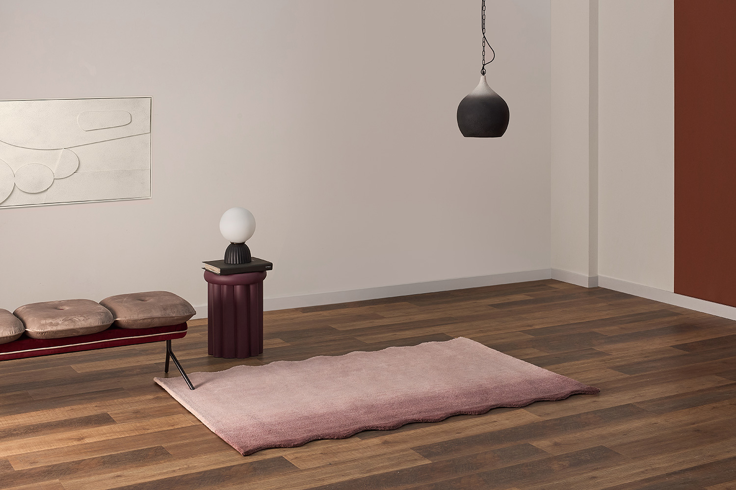 - Изысканный градиент и глубокий оттенок создают выразительный акцент в интерьере, привнося в окружающее пространство тепло и уют.