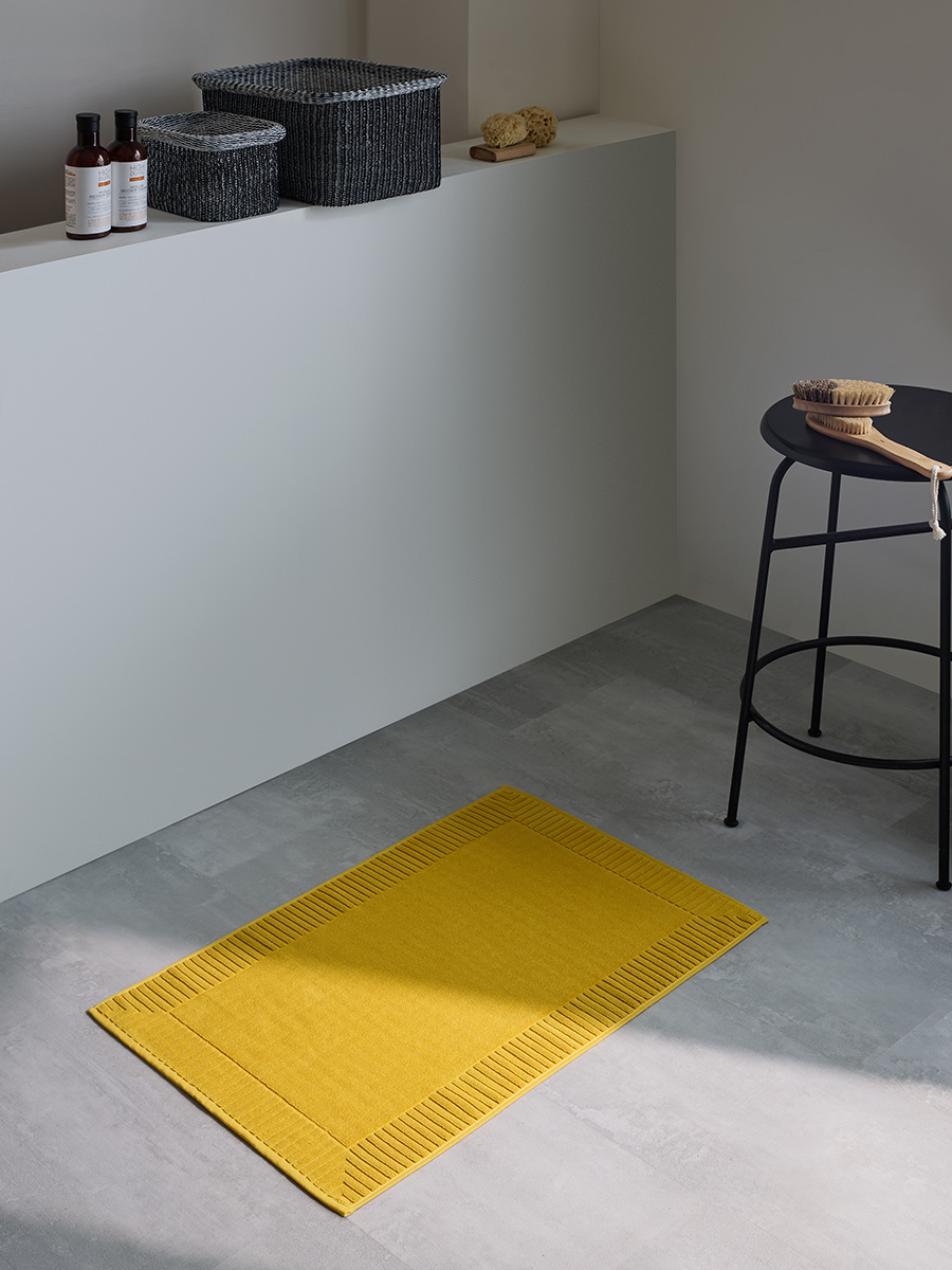 Коврик цвета охры с фактурным бортиком из коллекции Essential – стильное дополнение к интерьеру современной ванной комнаты. Выполненный в нейтральном оттенке, он прекрасно сочетается с отделкой и мебелью в любых тонах, создавая ощущение комфорта, уюта и чистоты.