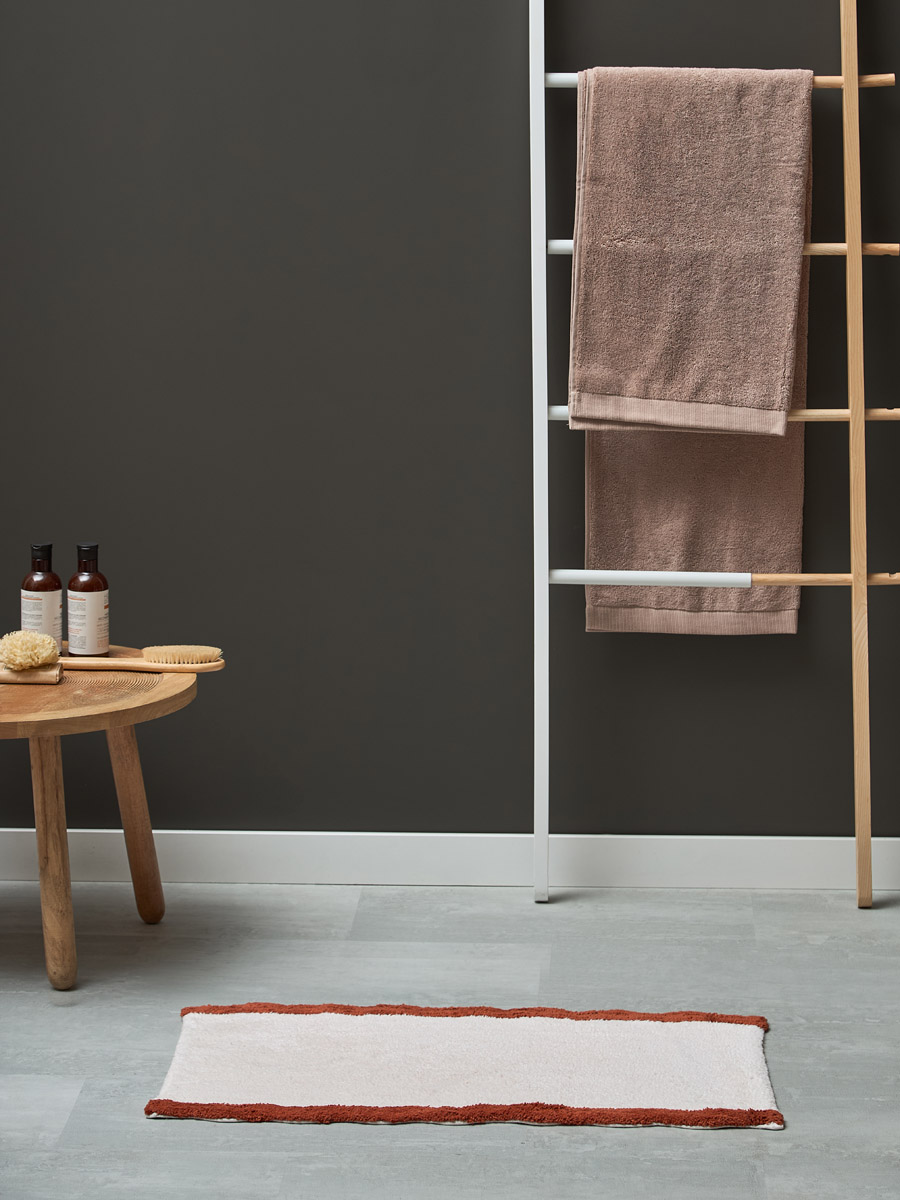 Коврик для ванной с кантом терракотового цвета из коллекции Trendy Ruffles понравится ценителям натуральных материалов и трендового дизайна. Текстиль с волнистой отделкой, напоминающей изящные раковины морских гребешков, стал ярким элементом стиля Ар Деко – и сейчас возвращается в моду, появляясь в самых актуальных интерьерных решениях.