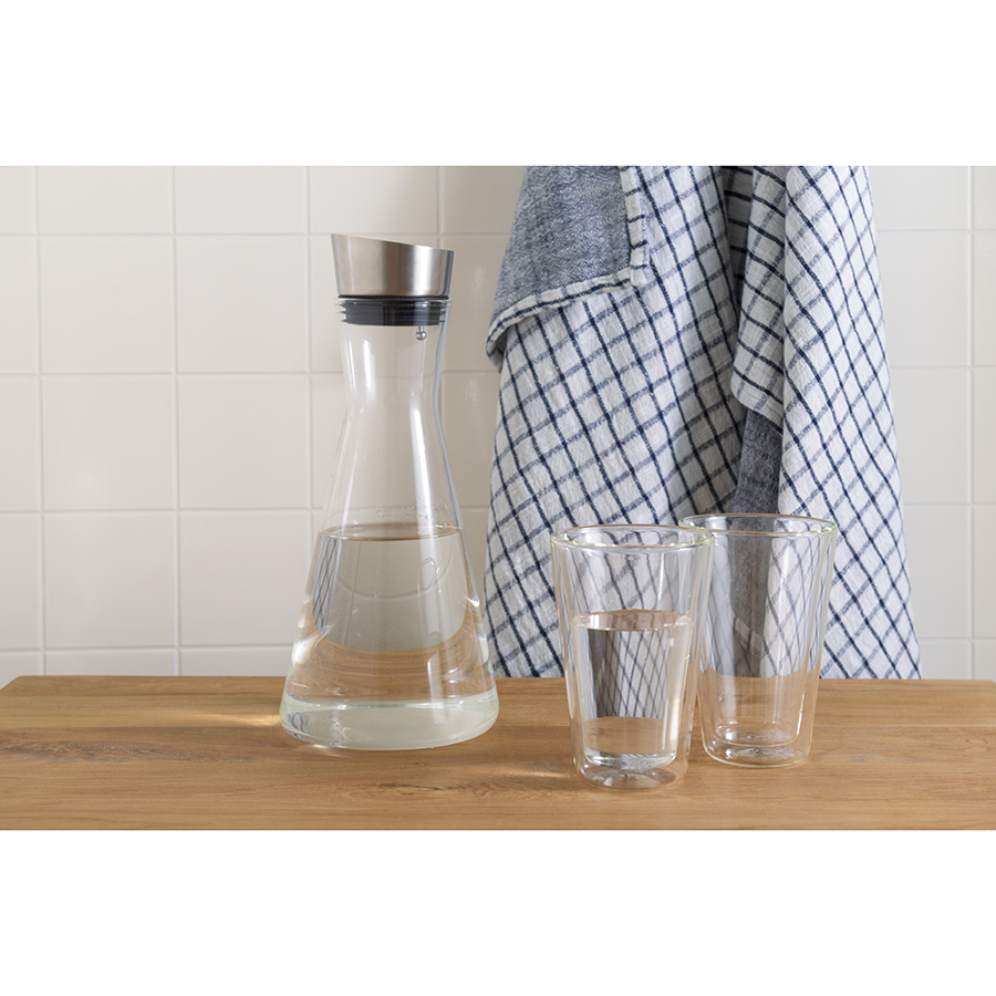 Кувшин для воды Simpel представляет собой емкость из боросиликатного стекла объемом 1,6 л, которую можно использовать для холодных и горячих напитков.