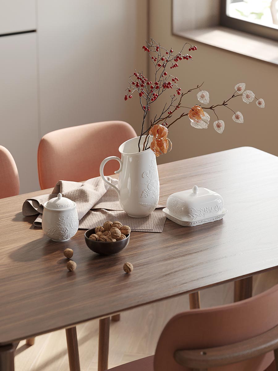 Коллекция English Gardens – посуда для сервировки и приготовления в английском стиле. Ее создала международная творческая команда: российские дизайнеры работали над формами и подбирали оттенки, а европейские иллюстраторы создавали цветочные паттерны. Коллекция состоит из двух частей. Она включает посуду для приготовления – разноцветные миски, салатники и предметы сервировки из каменной керамики, а также предметы сервировки из фарфора в нейтральном молочно-белом оттенке.