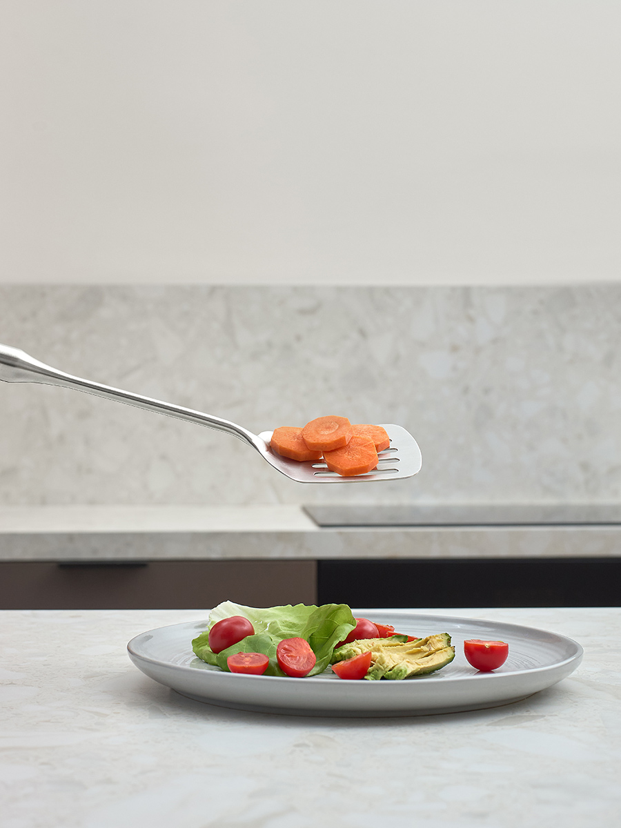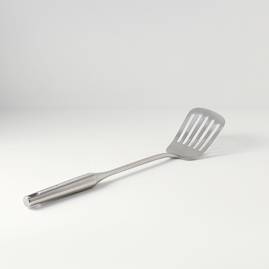 Лопатка Pure с прорезями отлично справится с задачей переворачивания и распределения продуктов в процессе готовки.