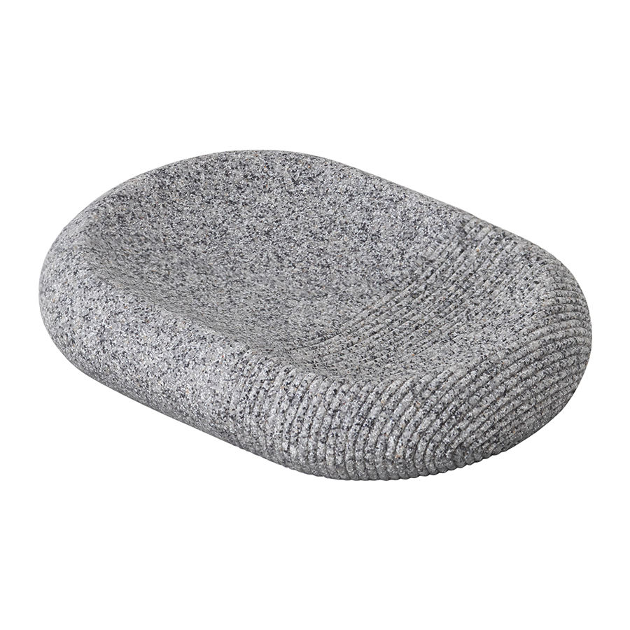 Мыльница Loup выполнена из полирезина, стилизованного под натуральный камень графитового оттенка.