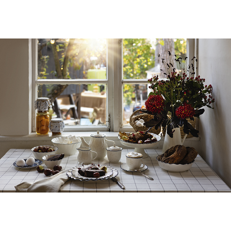 Коллекция Santorini великолепно передает атмосферу уединенного греческого острова, известного своими завораживающими видами и удивительной архитектурой. Оттенки белого и синего напоминают о бескрайнем море и уютных домиках на скалах, а необычная “мятая” фактура фарфора ассоциируется с каменистыми склонами и живописными утесами.