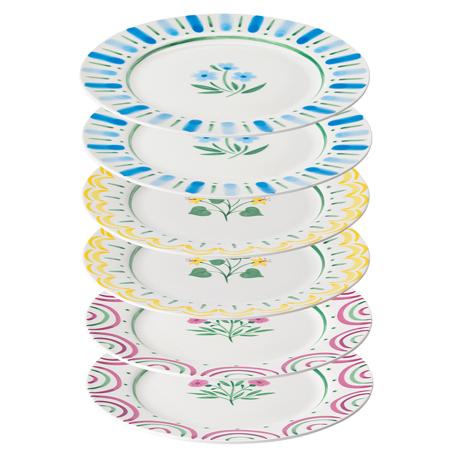 - Набор тарелок на 6 персон расписан вручную. Ненавязчивый цветочный узор радует глаз и создает летнее настроение.