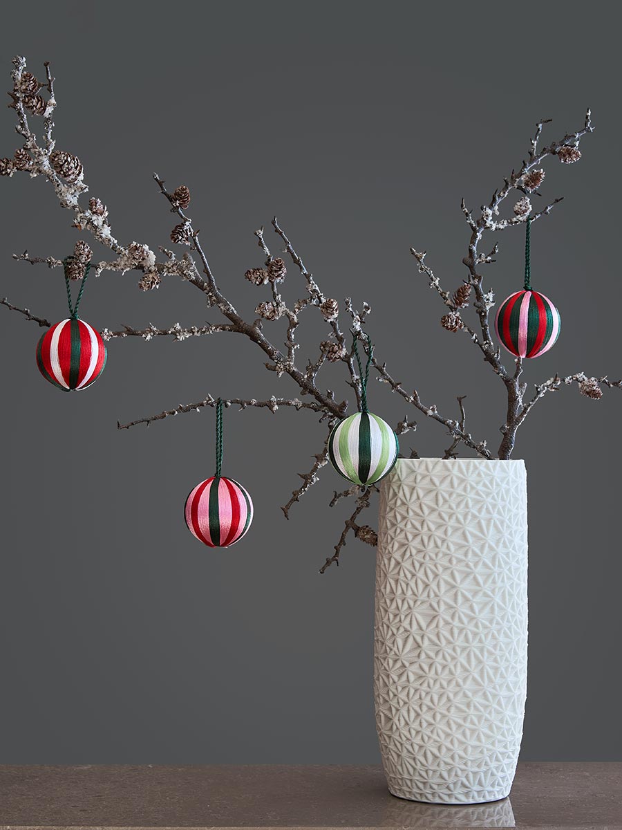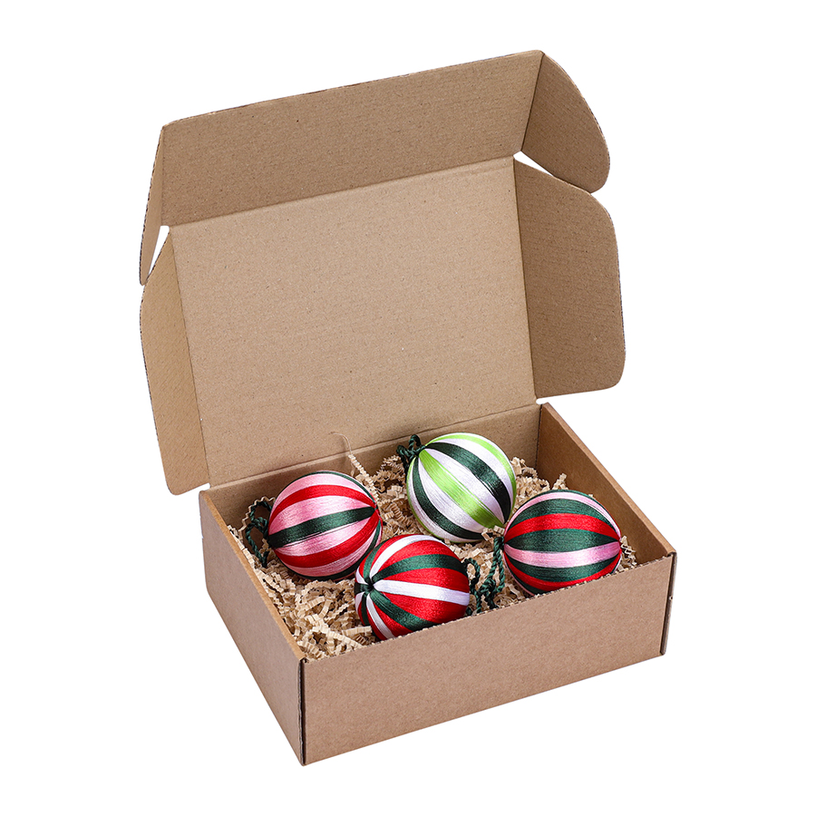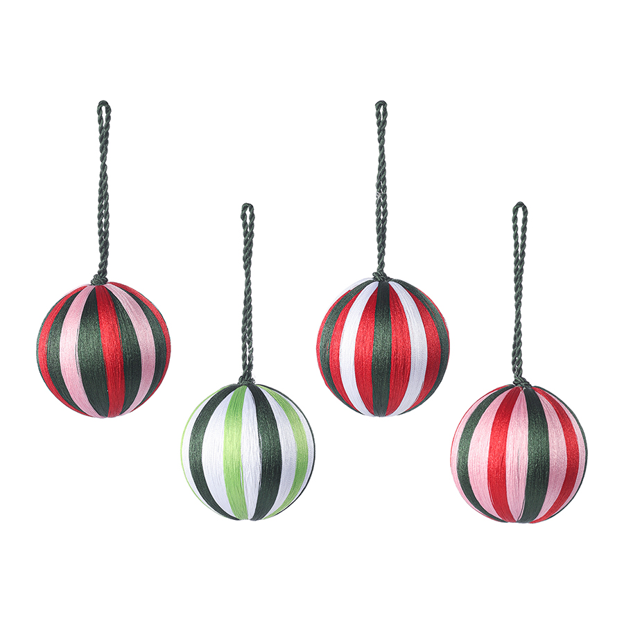 Словно квартет забавных клоунов в полосатых одежках, эти шарики подарят вам трепетное ощущение приближающегося праздника и предвкушения веселых сюрпризов. Разноцветные стильные игрушки обязательно придутся по душе тем, кто предпочитает яркий новогодний декор.