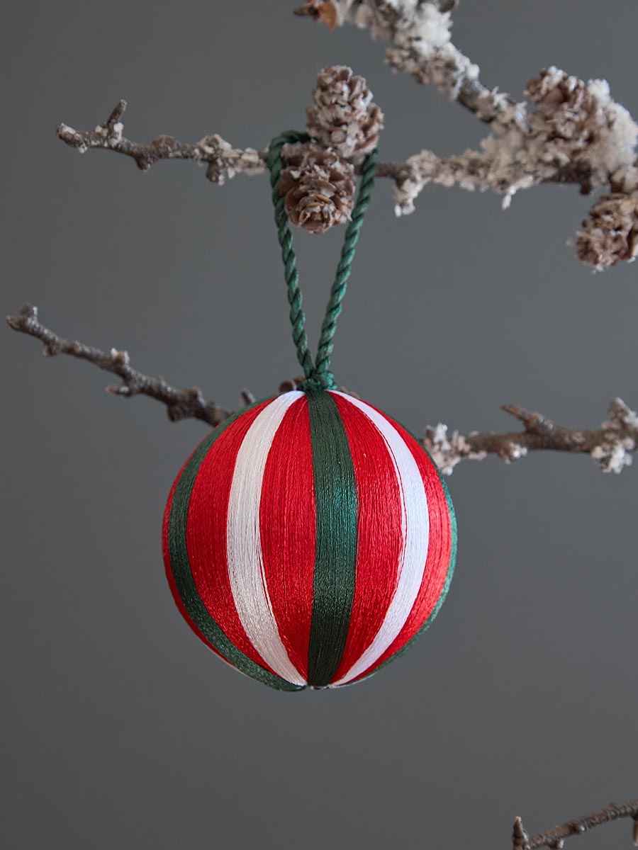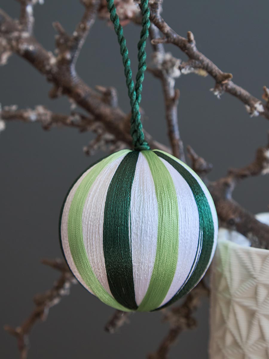 - Пластиковый каркас шаров декорирован разноцветными полиэстеровыми нитями, которые не теряют насыщенности цвета со временем.