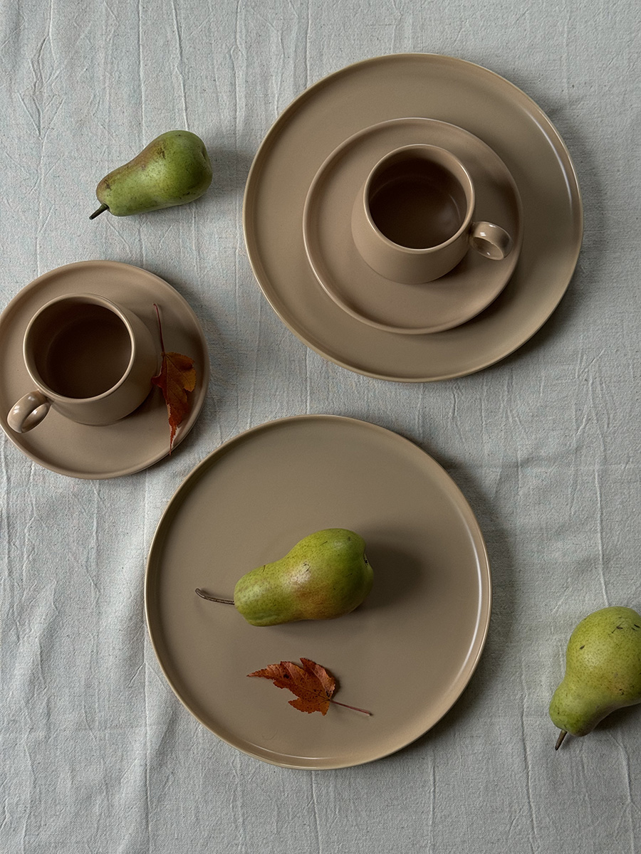 Набор из двух фарфоровых чайных пар нежного бежевого цвета подойдет как для праздничной сервировки, так и для ежедневного чаепития. Сдержанный скандинавский дизайн чашек и блюдец станет украшением вашей кухни, а необычная форма будет радовать каждый день. Гладкая фарфоровая поверхность с приятным, чуть приглушенным глянцем благородно выглядит и вместе с тем очень практична — не царапается и легко отмывается от загрязнений. Чайные пары можно дополнить другими предметами из серии Essential — например, тарелками, блюдами и салатниками.