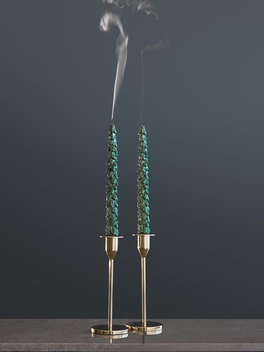 Набор из двух свечей из коллекции New Year Essential создаст волшебную атмосферу праздника. Высокие зеленые елочки идеально подходят для украшения праздничного стола, камина или подоконника.
