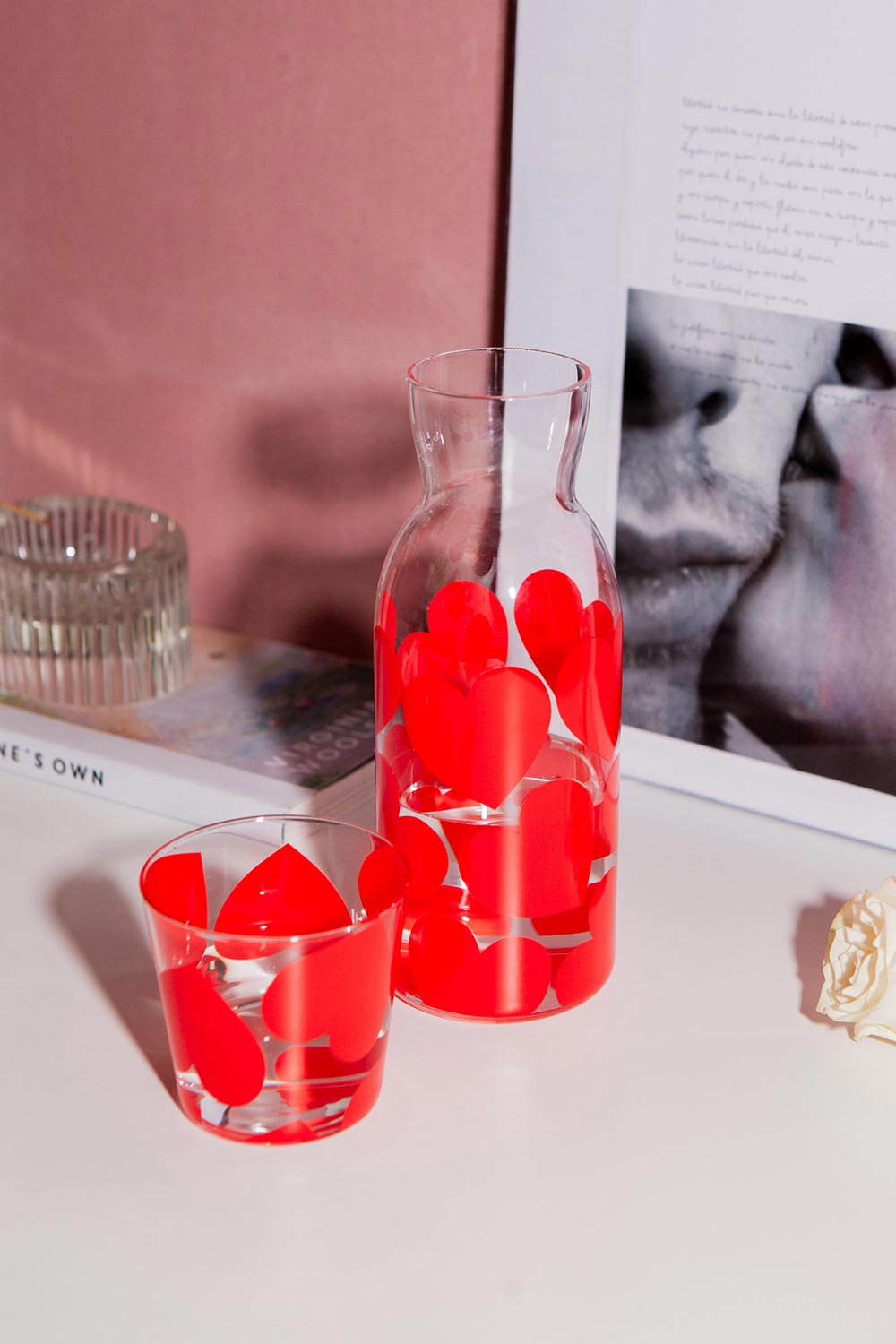 Прозрачное стекло, украшенное россыпью алых сердечек, словно наполняет напиток теплом и эмоциями.