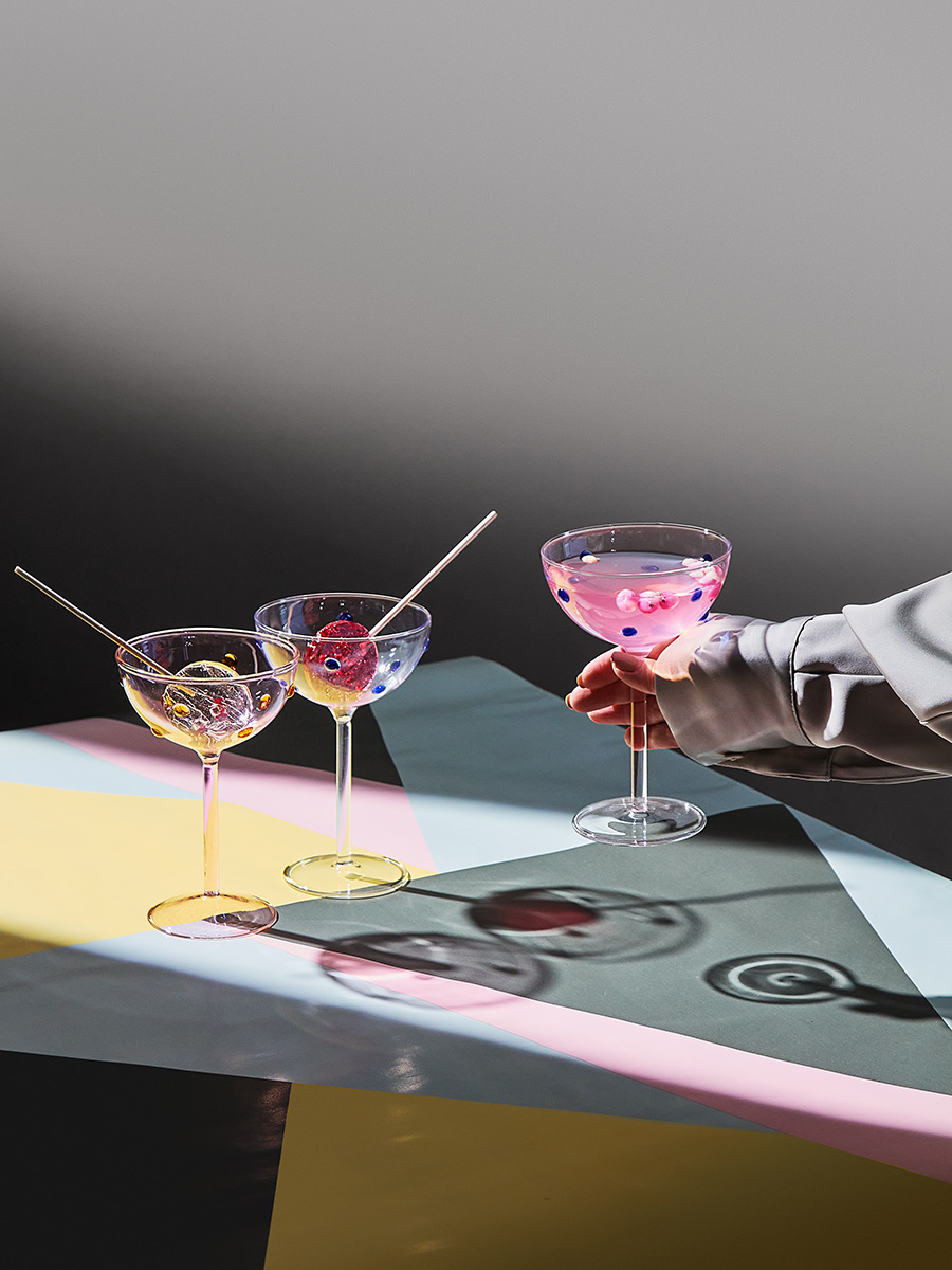 Набор креманок Pom-pon станет прекрасным приобретением для тех, кто любит необычные предметы сервировки. Такой вид посуды идеально подходит для подачи игристых вин и десертов. Коллекция привлекает внимание интересным дизайном – стенки бокалов, стаканов и креманок украшает объемный декор в виде застывших цветных капель.