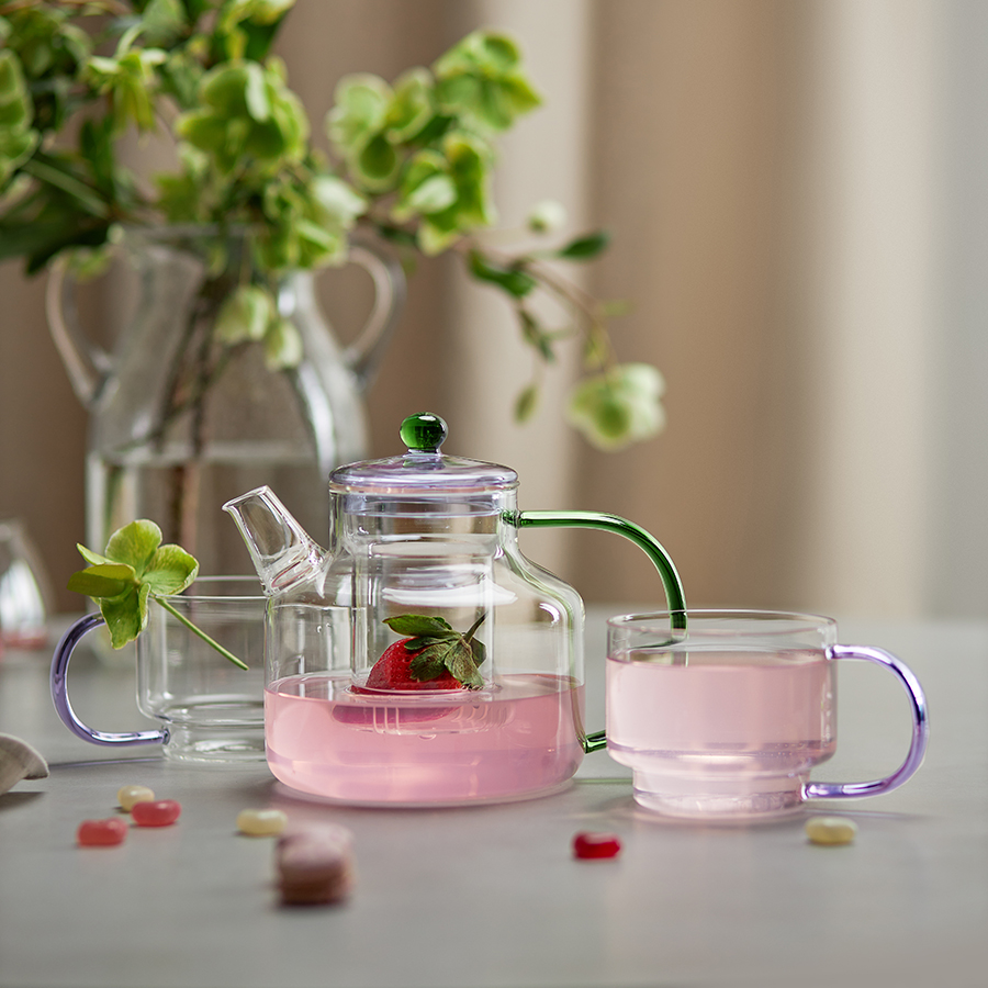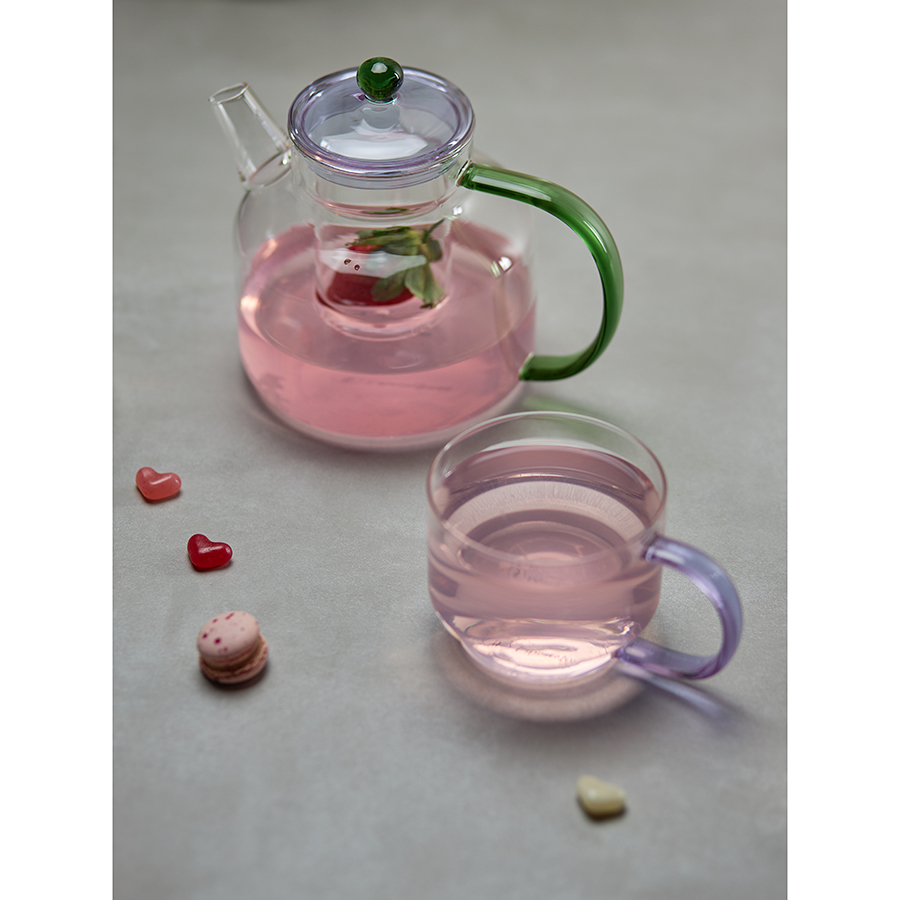 Материал: боросиликатное стекло. Размеры: 13,8х9,8х7,7 см. Объем: 400 мл. Цвет: прозрачный/фиолетовый. Количество в наборе: 2 шт.