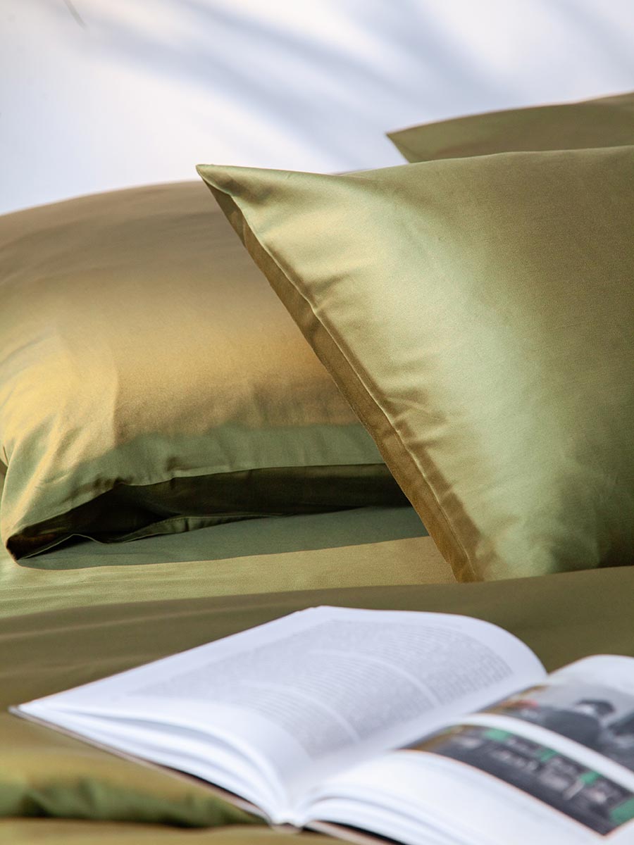 Набор наволочек из премиального сатина оливкового цвета из коллекции Essential, 70х70 см