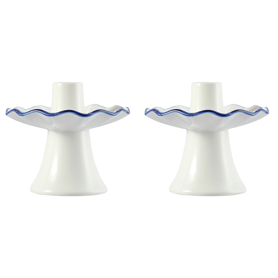 - Акцентная голубая кайма придает белоснежным подсвечникам особую элегантность.