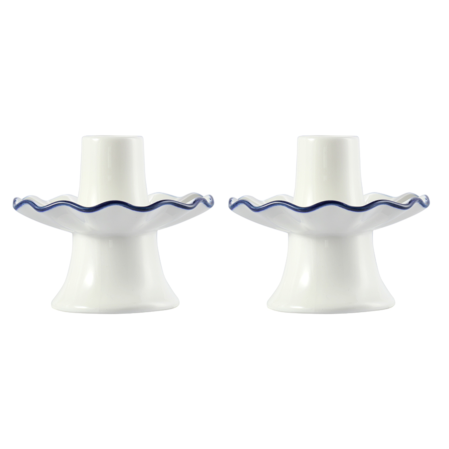 - Акцентная голубая кайма придает белоснежным подсвечникам особую элегантность.