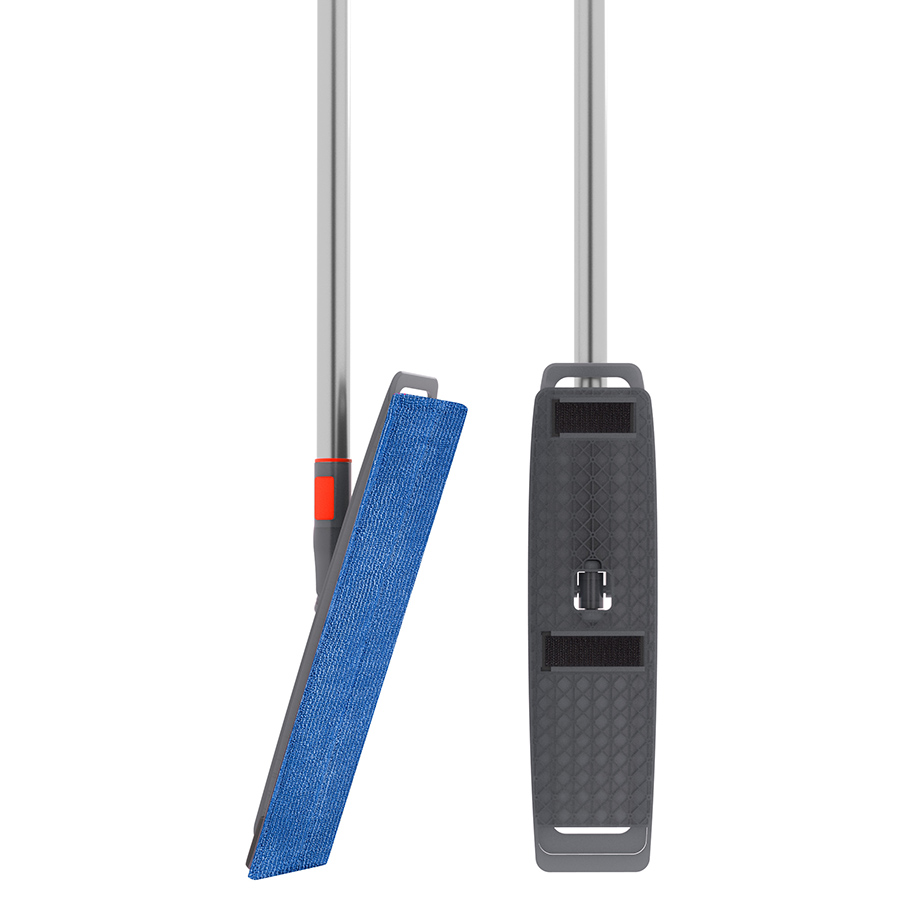 Подвижное основание для швабры, изменяющее уровень наклона швабры, с насадкой-тряпкой из микрофибры, которая выдерживает до 300 стирок при температуре до 60˚, – универсальный помощник для дома. Телескопическая ручка облегчит уборку в труднодоступных местах. Она снабжена удобным механизмом, который фиксирует две его части в раздвижном положении, препятствуя самопроизвольному сложению. Аксессуар дополнен пластиковым колпачком с кольцом для подвешивания.