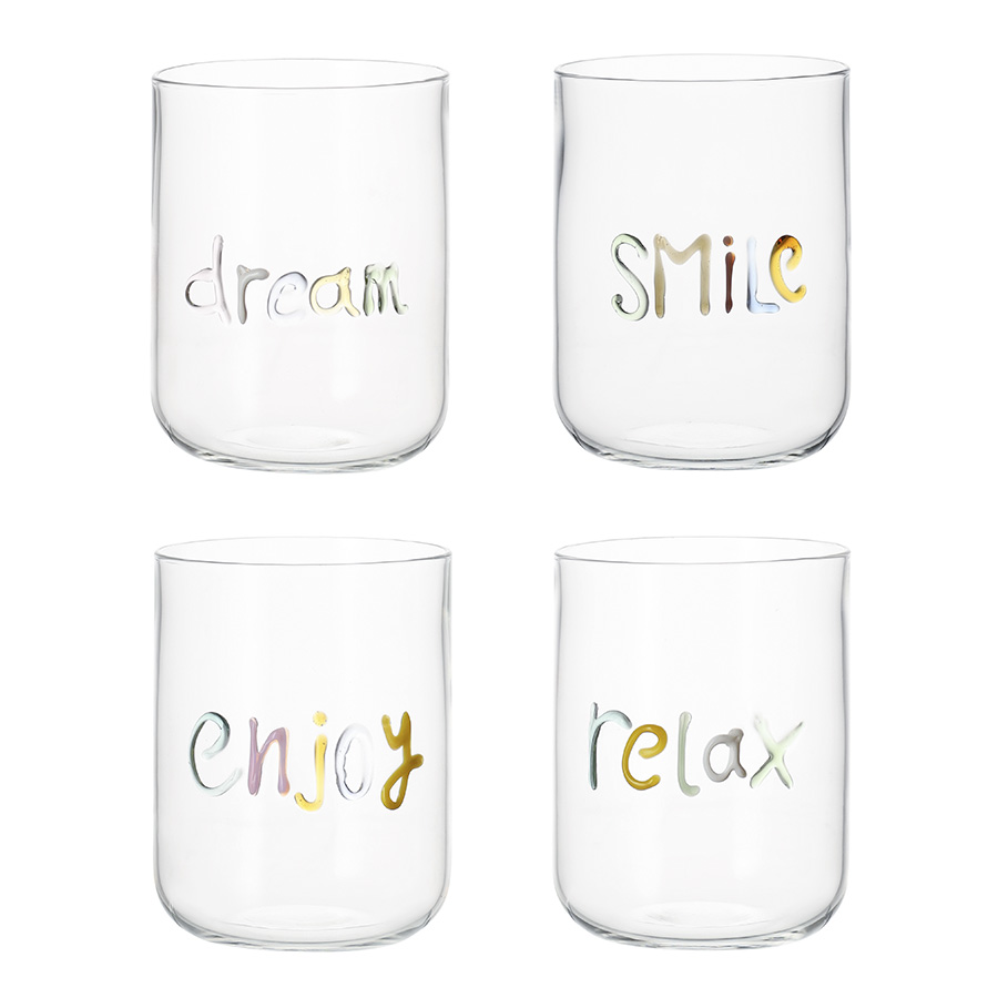 Набор стаканов Cheers станет настоящей находкой для тех, кто любит необычные предметы сервировки. Такая посуда идеально подходит для подачи холодных напитков. Набор привлекает внимание интересным дизайном – стенки стаканов украшает рельефная, цветная надпись.