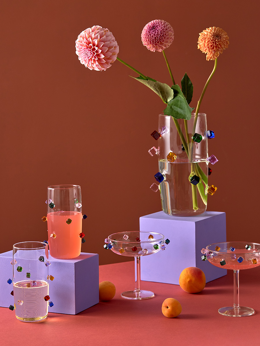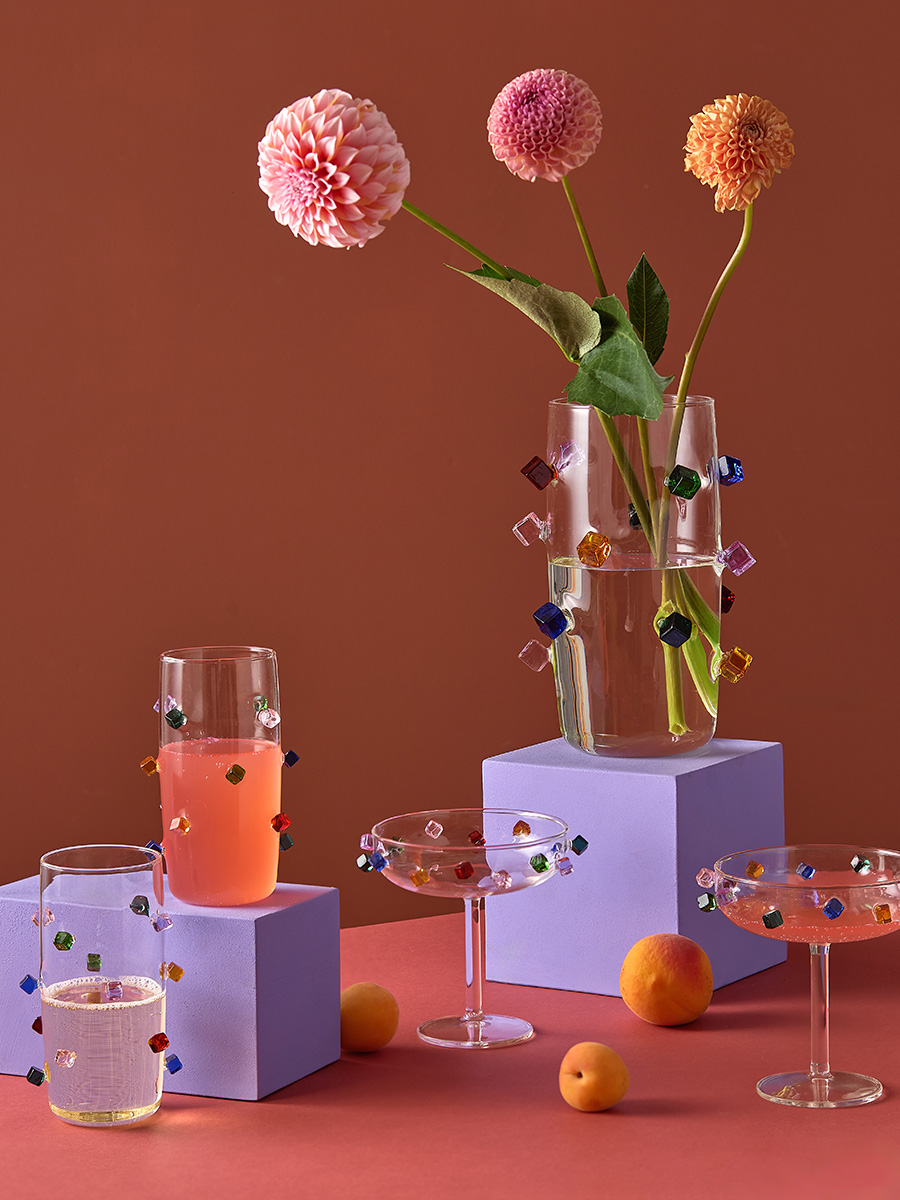 Набор стаканов Fiesta станет настоящей находкой для тех, кто любит необычные предметы сервировки. Такая посуда идеально подходит для подачи холодных напитков. Набор привлекает внимание интересным дизайном – стенки стаканов украшает объемный декор в виде разноцветных кубиков.
