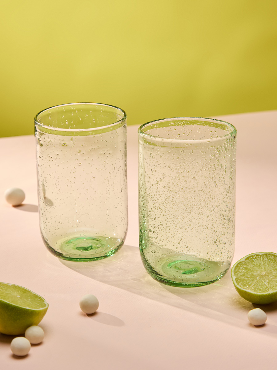 Набор стаканов из коллекции Flowi от бренда Liberty Jones привлекает внимание необычным дизайном. Изделия выполнены вручную, поэтому их размеры, а также рисунок пузырьков будут отличаться от фото: сами пузырьки могут быть разного размера и формы, а также могут образовывать неравномерные скопления. Это создает эффект настоящего потока воды, застывшего в стенке бокала.
